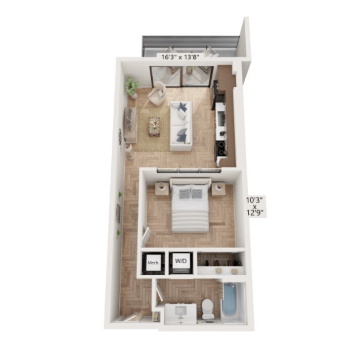 1 Dormitorio, 1 Baño, 633-748 pies²Disponible AhoraEl más grandeEsta opción tiene las unidades más grandes para este modeloGalería del Modelo