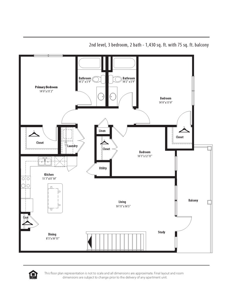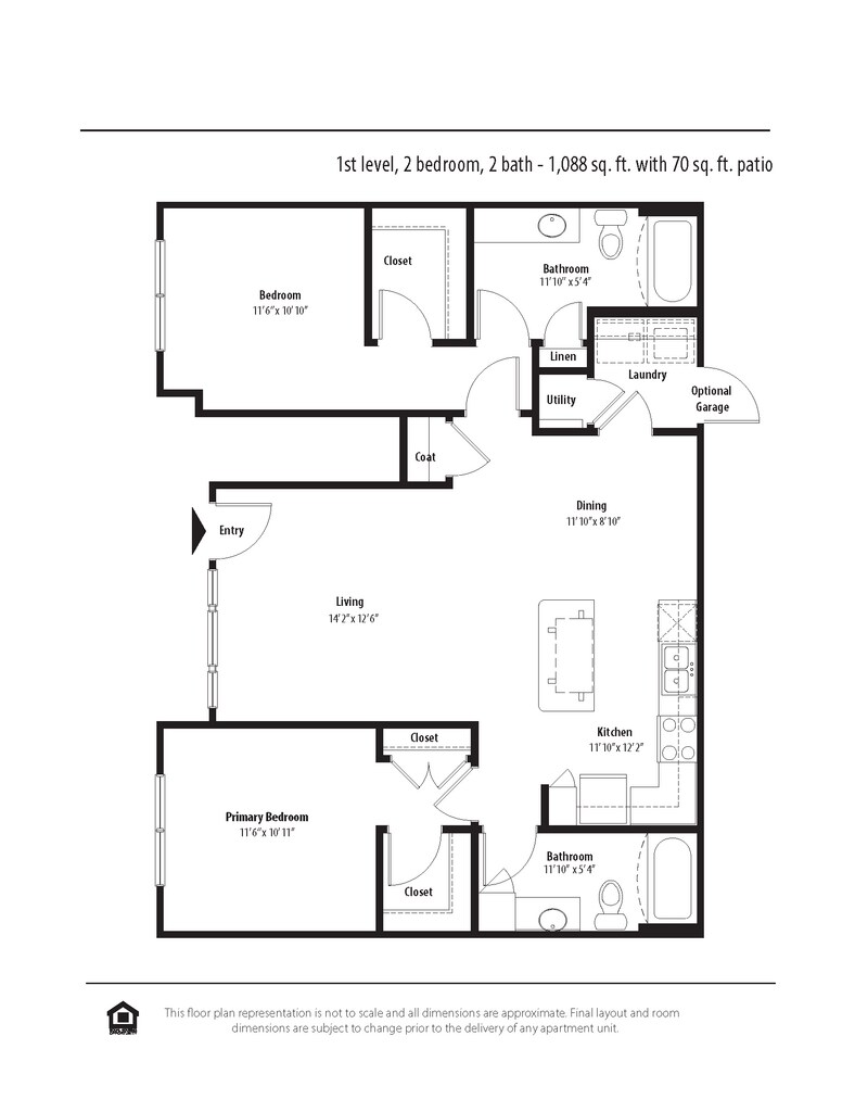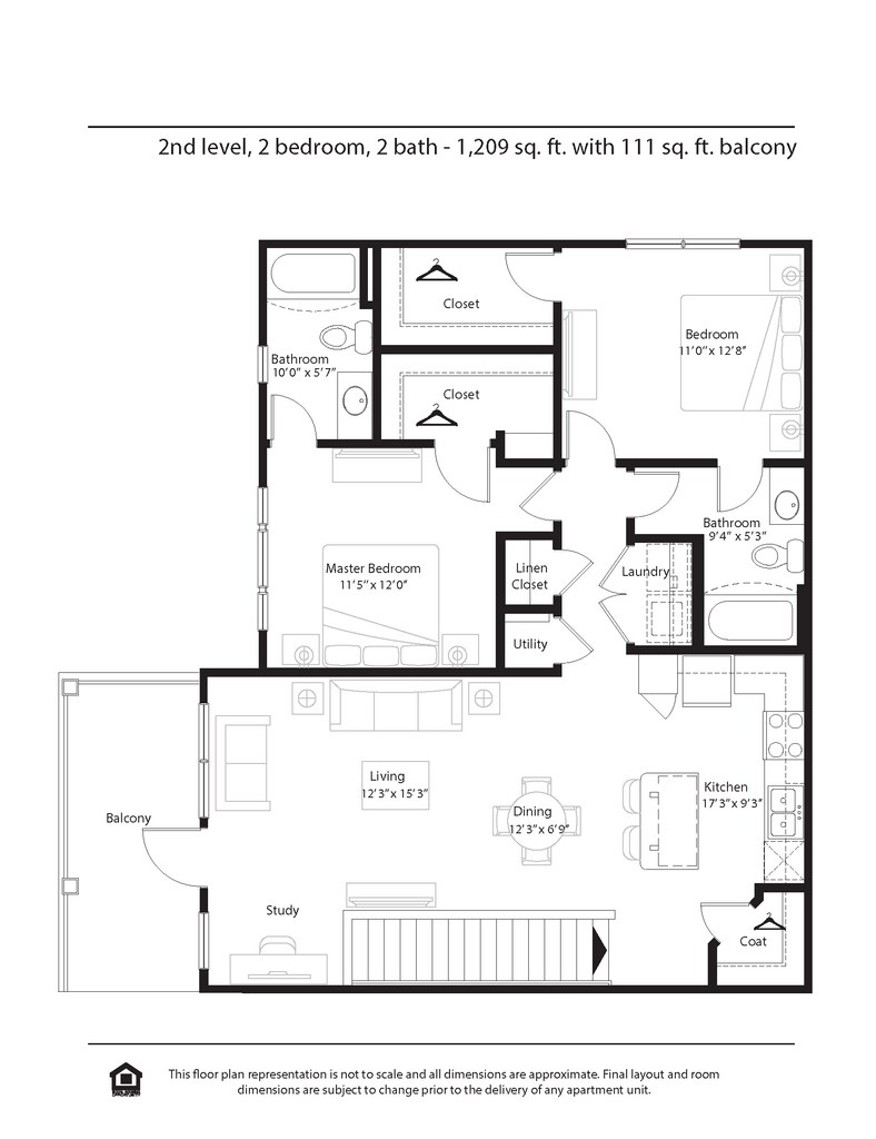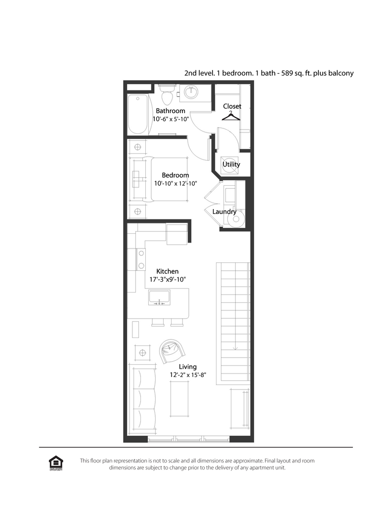 1 Dormitorio, 1 Baño, 888 pies²Disponible AhoraGalería del Modelo