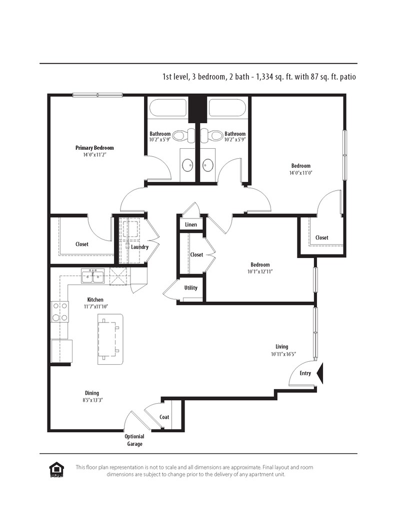 1DO - Plano 1 Unidad de apartamento: 10218Modelo de apartamento: 1DO$1,5001 Dormitorio, 1 Baño, 888 sq ftDisponible Ahora![]()