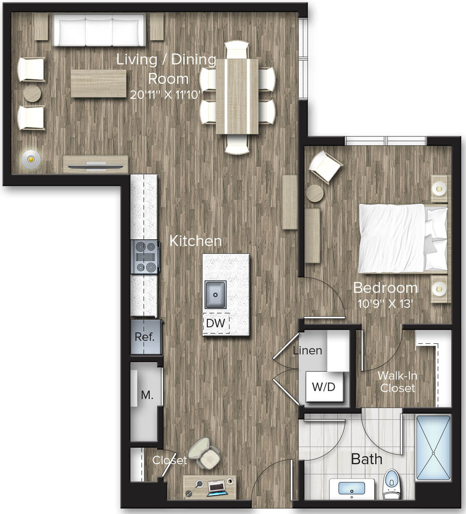 1 Dormitorio, 1 Baño, 887 pies²Precio Mensual TotalDisponible AhoraEl más grandeEsta opción tiene las unidades más grandes para este modeloGalería del Modelo
