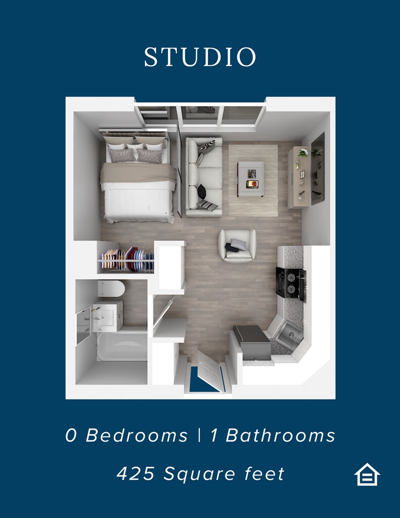 Estudio, 1 Baño, 450 pies²Disponible AhoraGalería del Modelo