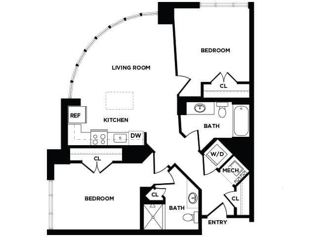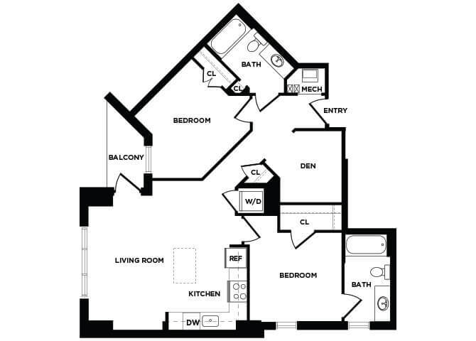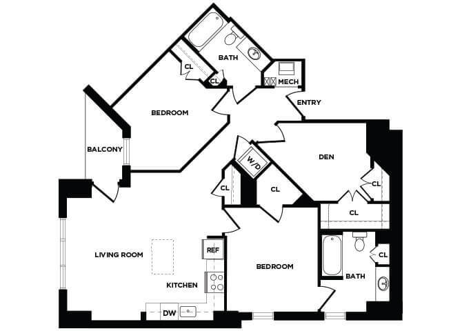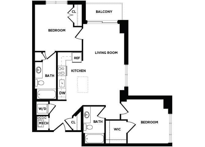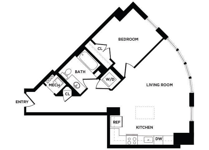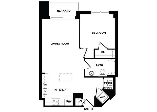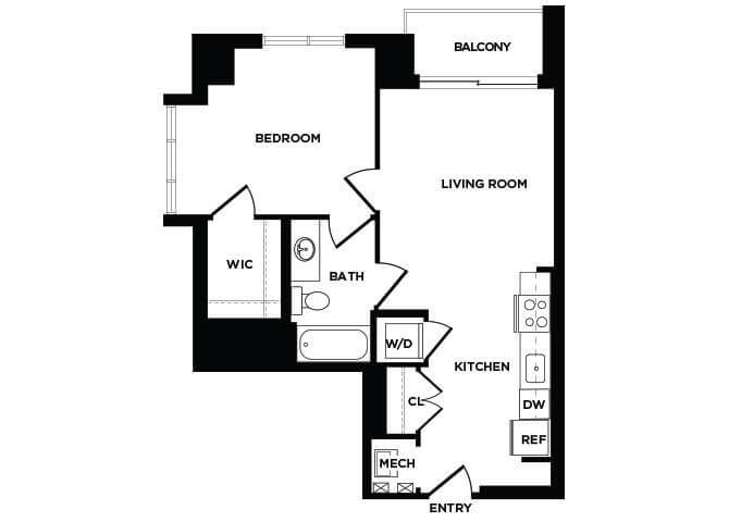 Modelo de apartamento: A6Desde $2,4301 Dormitorio, 1 Baño, 677 sq ftDisponible December 27, 2025![]()