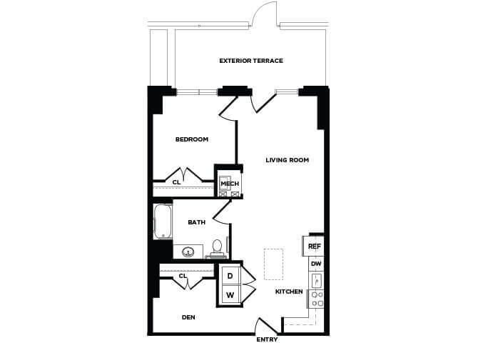 Modelo de apartamento: S5Llame para PreciosEstudio, 1 Baño, 643 sq ftNo Disponible![]()