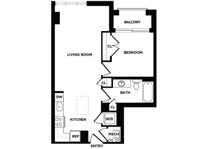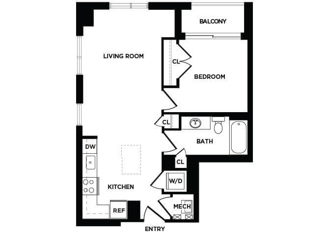 Estudio, 1 Baño, 595 pies²Disponible AhoraGalería del Modelo