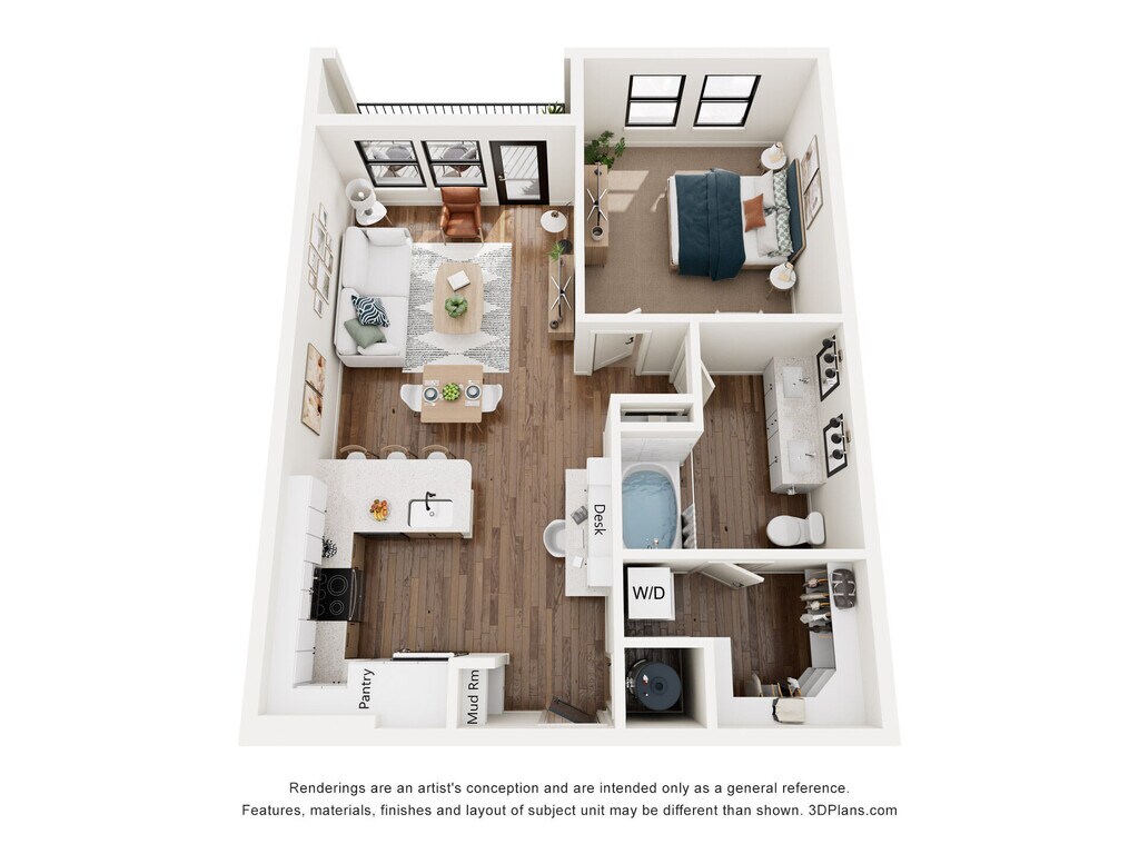 1 Dormitorio, 1 Baño, 743 pies²Disponible AhoraGalería del Modelo