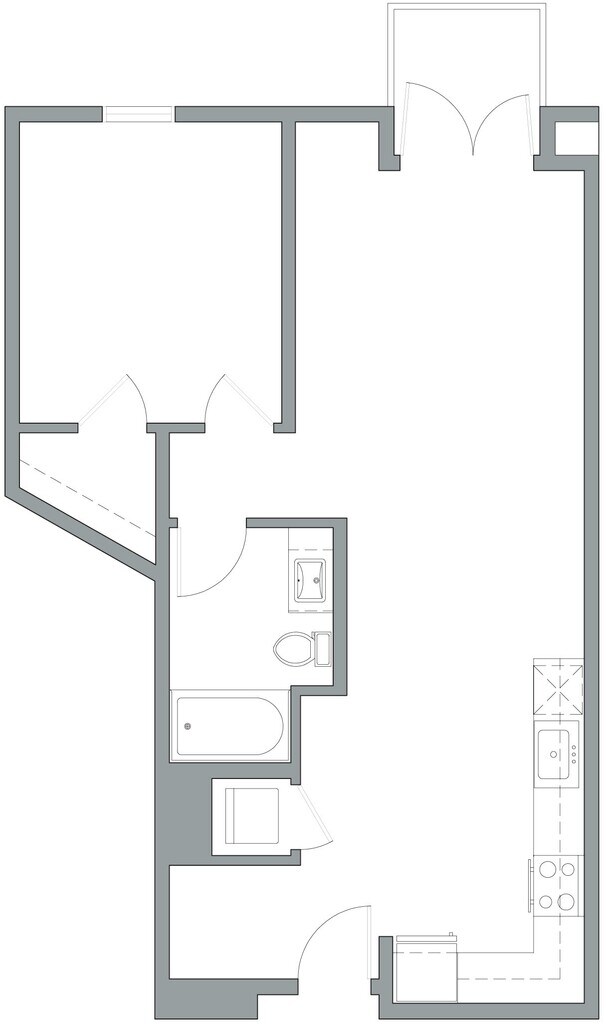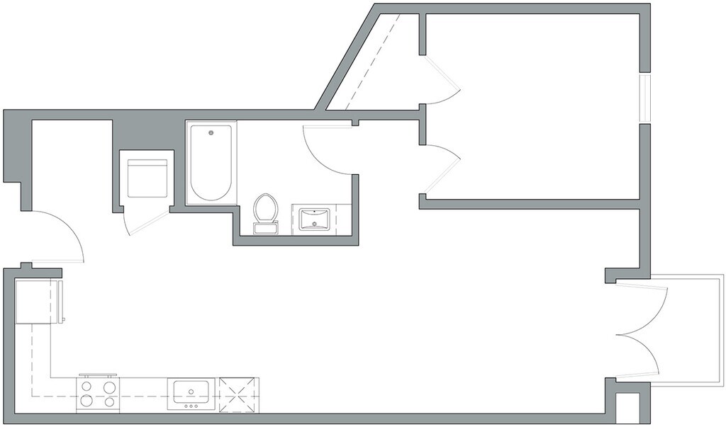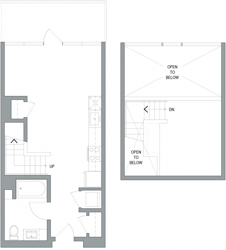 Estudio, 1 Baño, 634-676 pies²Disponible AhoraGalería del Modelo