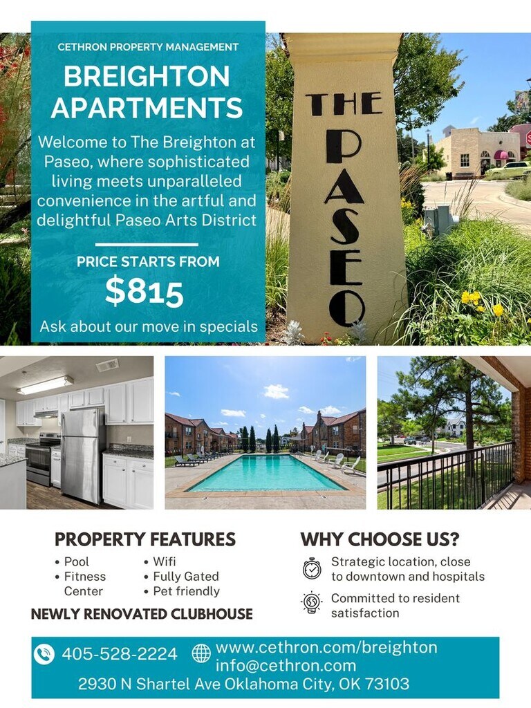 The Breighton at Paseo se encuentra en el Barrio Paseo y el código postal 73103 de Oklahoma City, OK.