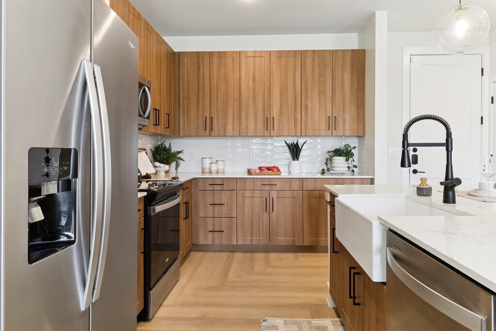 The Brentwood introduces a touch of coastal elegance to complement Austins eclectic vibe. This brand-new community offers a truly original way to experience upscale living with floor plans featuring unique designs, including studios, one-bedroom, two-bedroom, and townhome options. Stay connected to the city while enjoying a more boutique, laid-back sense of sophistication. Our residences feature high-end designer finishes throughout, including quartz countertops in kitchens and bathrooms, stainless steel appliances, and expansive walk-in closets. Our homes also include a private a patio or balcony, perfect for an afternoon coffee with a friend.