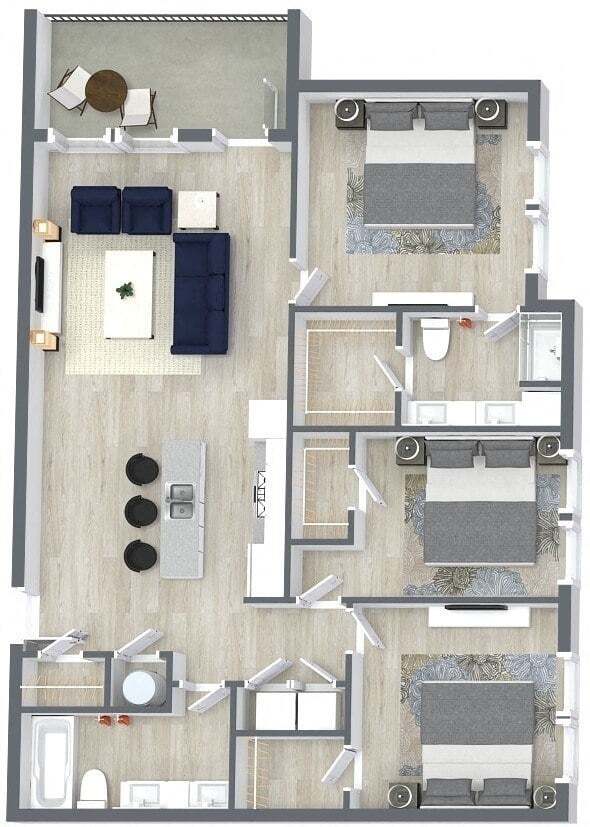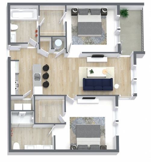 Modelo de apartamento: 1x1-JuniperDesde $1,5411 Dormitorio, 1 Baño, 686 sq ftDisponible Ahora![]()