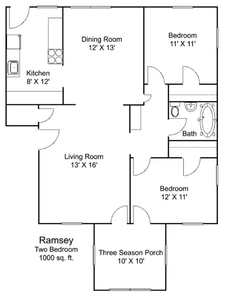 Fecha Disponibilidad Unidad Pies² No Disponible Ramsey 1070 pies² Modelo de apartamento: Ramsey2 Dormitorios, 1 Baño, 1070 sq ftNo DisponibleRamsey - Plano 1 Hubbard