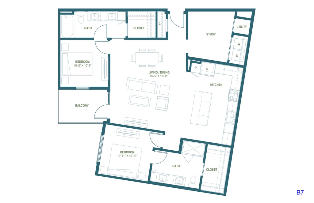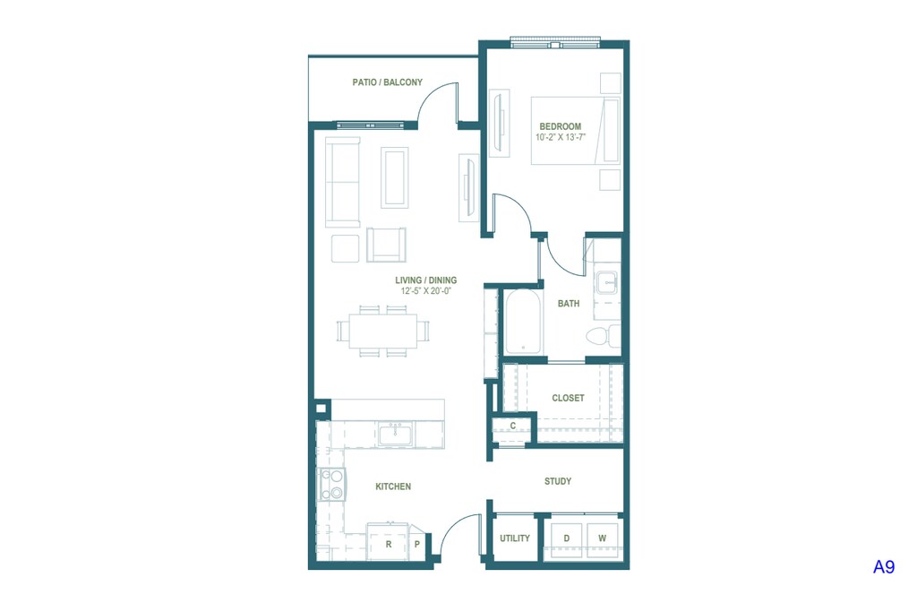 Estudio, 1 Baño, 600 pies²Disponible AhoraGalería del Modelo