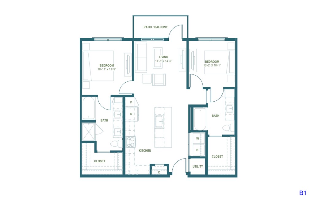 1 Dormitorio, 1 Baño, 720 pies²Disponible AhoraGalería del Modelo