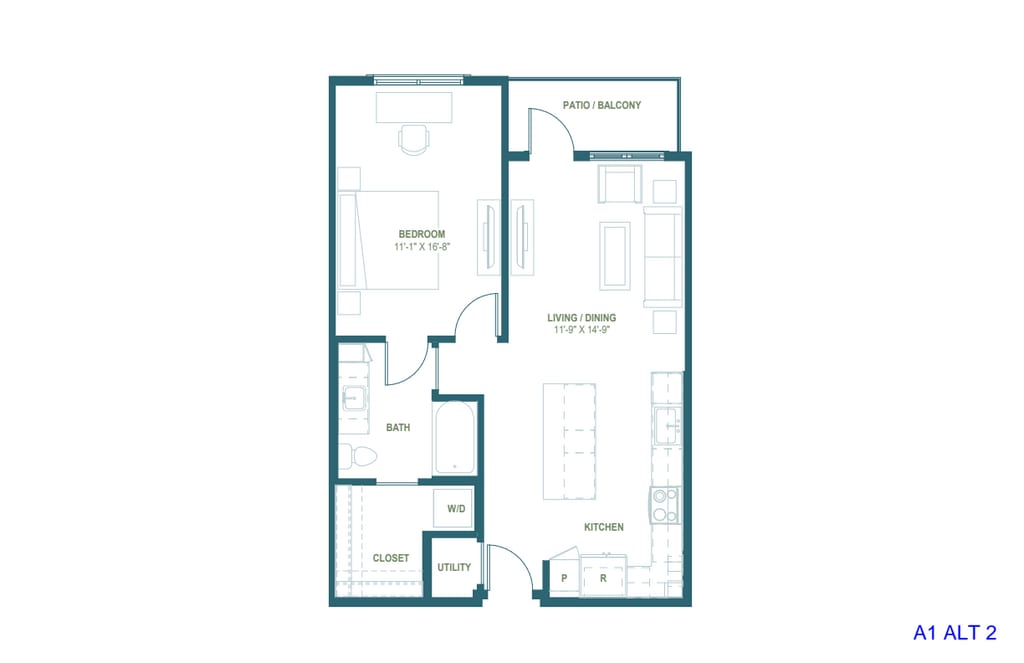 Unidad: 1157 - Plano 1 A2 | 1 Bed | 1 Bath