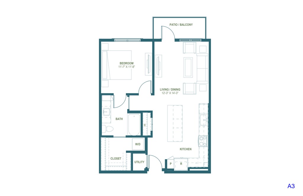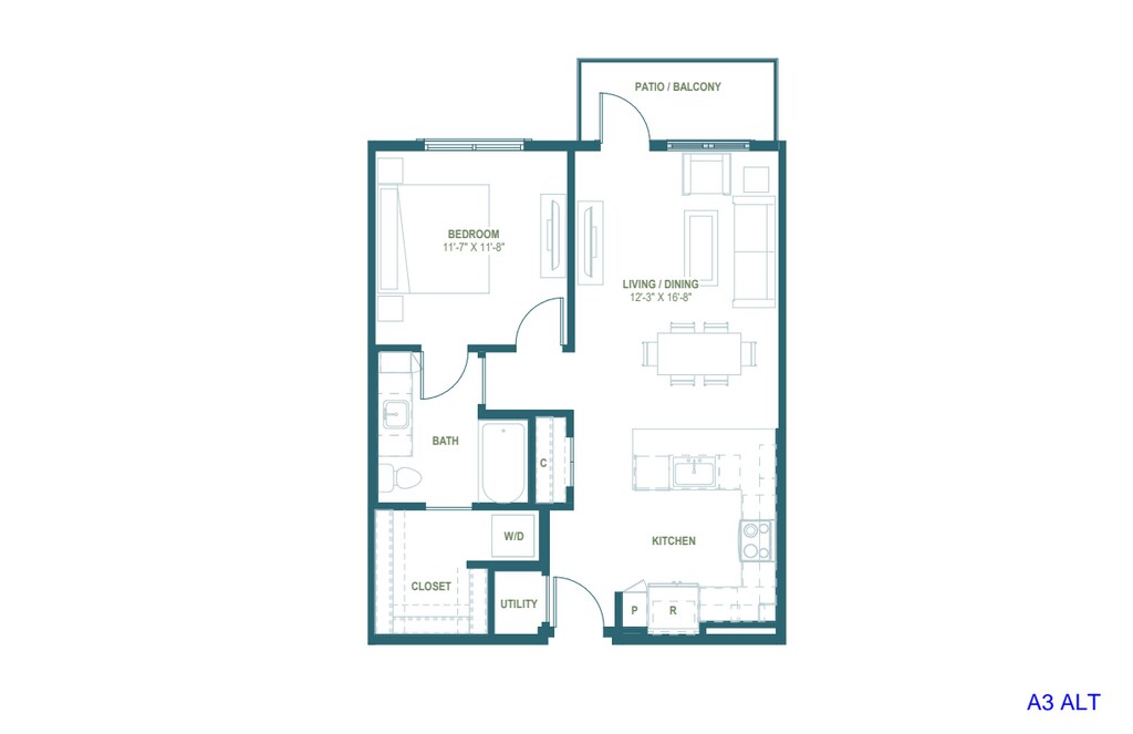 Modelo de apartamento: A0 | 1 Bed | 1 BathDesde $1,5551 Dormitorio, 1 Baño, 660 sq ftDisponible Ahora![]()