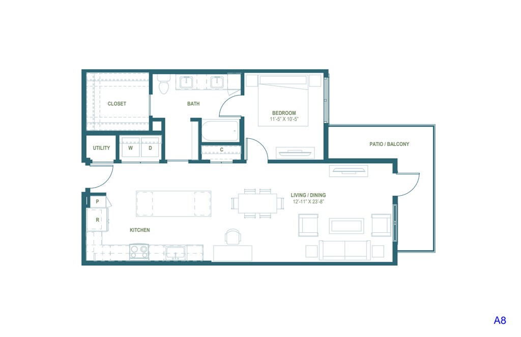 1 Dormitorio, 1 Baño, 660 pies²Precio Mensual TotalDisponible AhoraPrecio Mensual Total