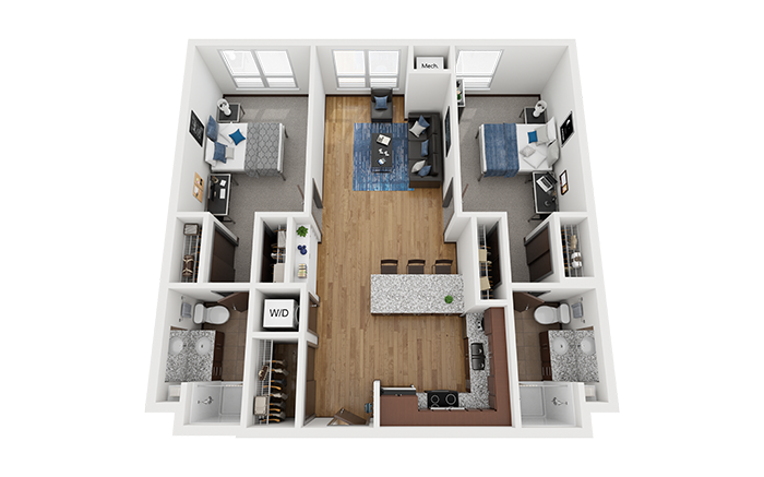2 Dormitorios, 2 Baños, 1110 pies²Precio Mensual TotalDisponible AhoraEl más grandeEsta opción tiene las unidades más grandes para este modeloGalería del Modelo
