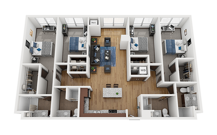 Modelo de apartamento: D1$8004 Dormitorios, 4 Baños, 1626 sq ftDisponible AhoraD1 - Plano 1 Unidad de apartamento: PrivateModelo de apartamento: D1$8004 Dormitorios, 4 Baños, 1626 sq ftDisponible Ahora