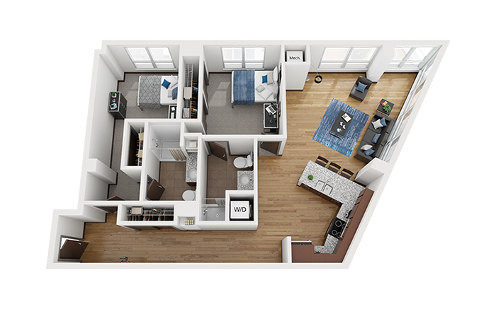 Modelo de apartamento: A5$1,4421 Dormitorio, 1 Baño, 684 sq ftDisponible AhoraA5 - Plano 1 Unidad de apartamento: PrivateModelo de apartamento: A5$1,4421 Dormitorio, 1 Baño, 684 sq ftDisponible Ahora2 Dormitorios