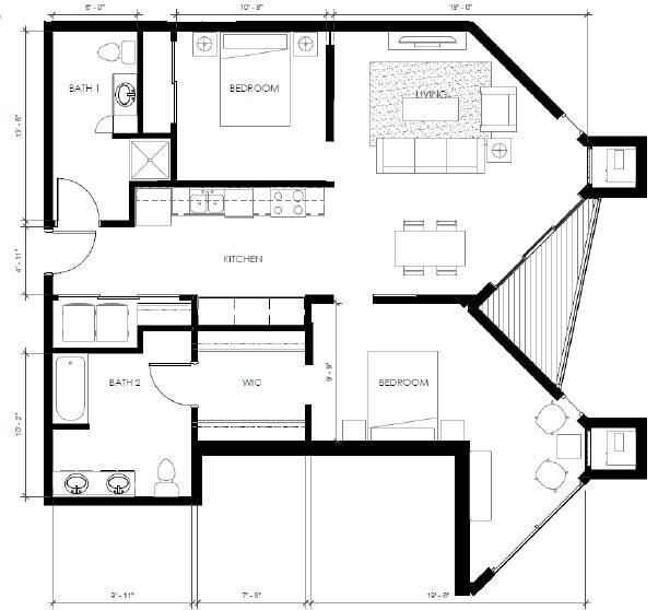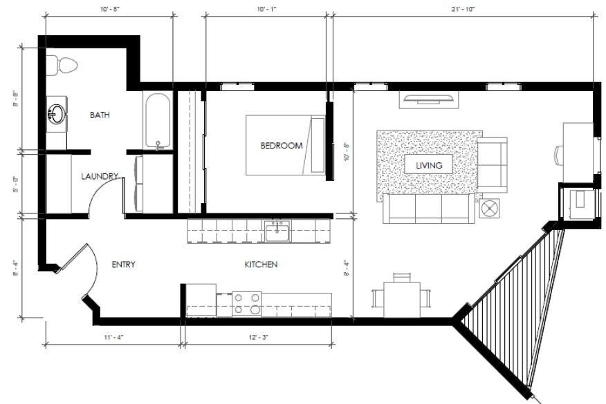 1 Dormitorio, 1 Baño, 710 pies²Galería del Modelo
