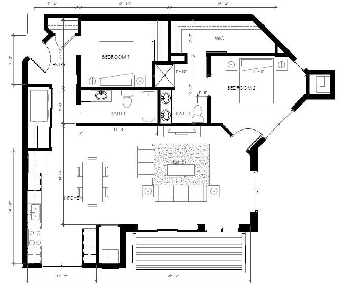 2 Dormitorios, 2 Baños, 1155 pies²Galería del Modelo