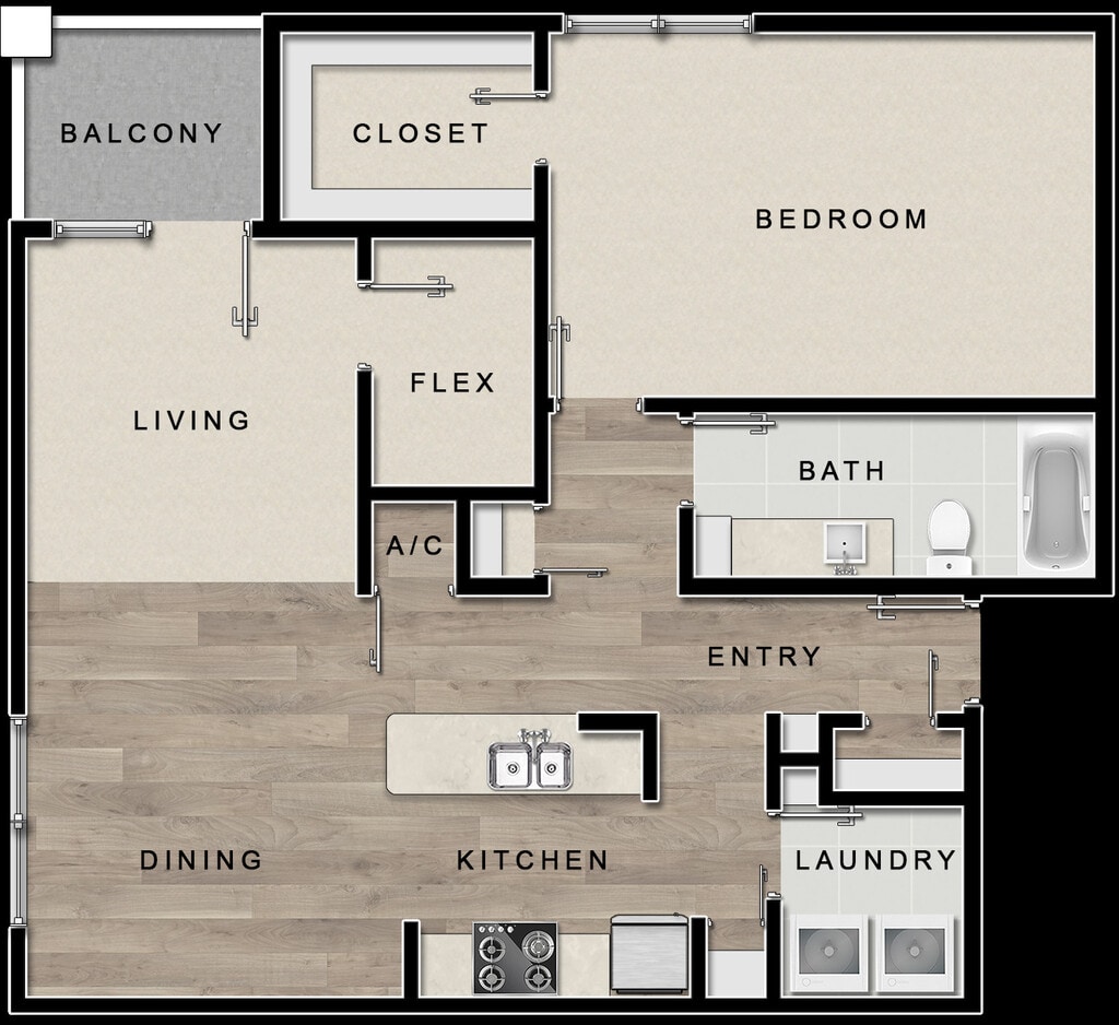 1 Dormitorio, 1 Baño, 825-895 pies²Disponible AhoraGalería del Modelo