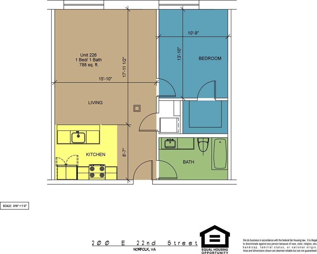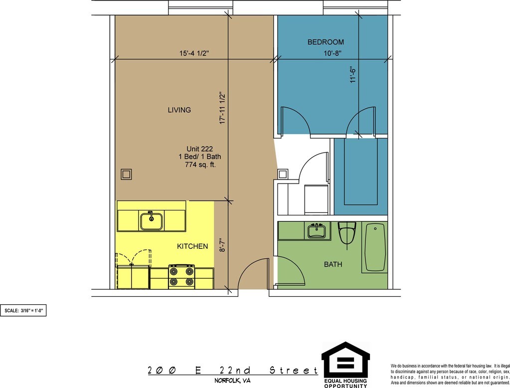 Modelo de apartamento: The Brightleaf Building 2271 Dormitorio, 1 Baño, 575 sq ftNo Disponible![]()