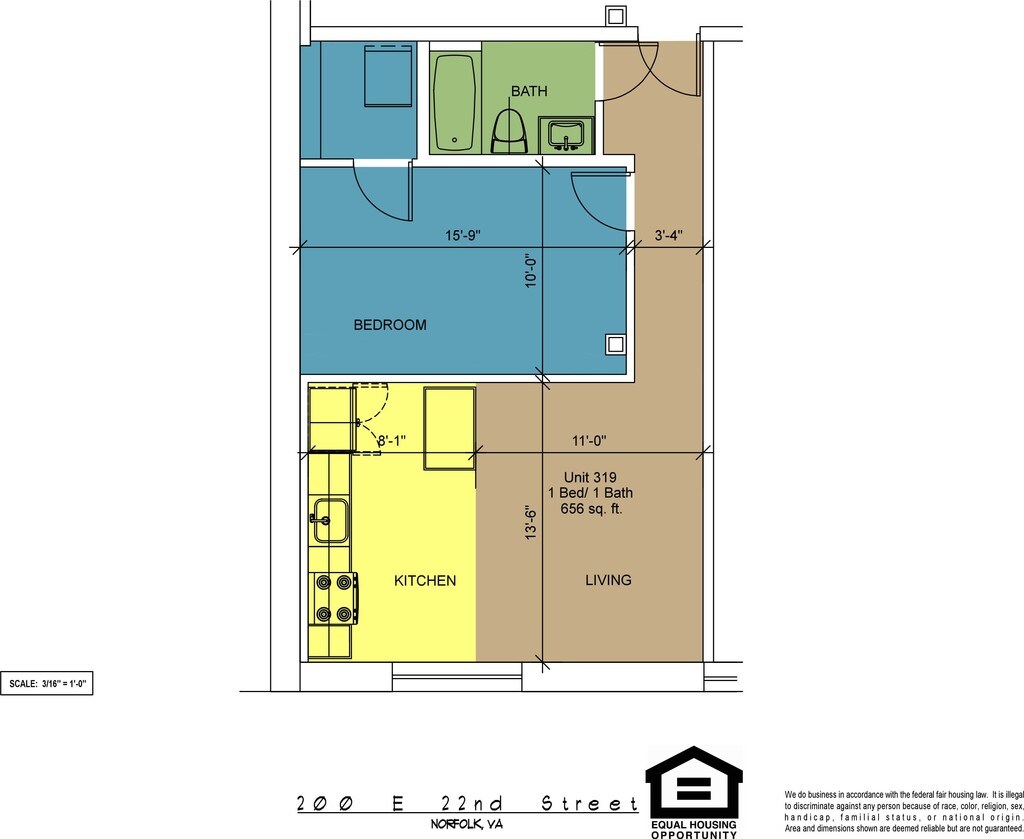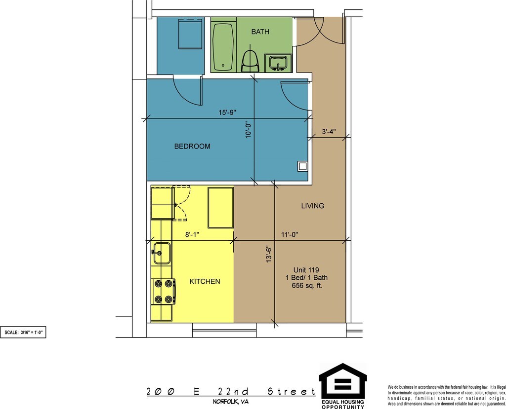Modelo de apartamento: The Brightleaf Building 1191 Dormitorio, 1 Baño, 656 sq ftNo Disponible![]()