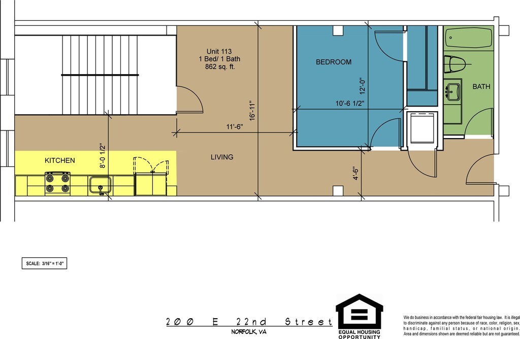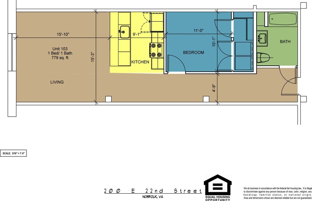 Unidad de apartamento: 203Modelo de apartamento: The Brightleaf Building 2031 Dormitorio, 1 Baño, 779 sq ftDisponible AhoraThe Brightleaf Building 115