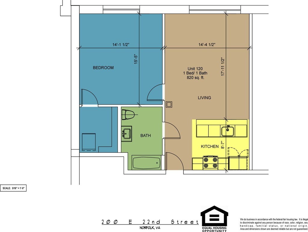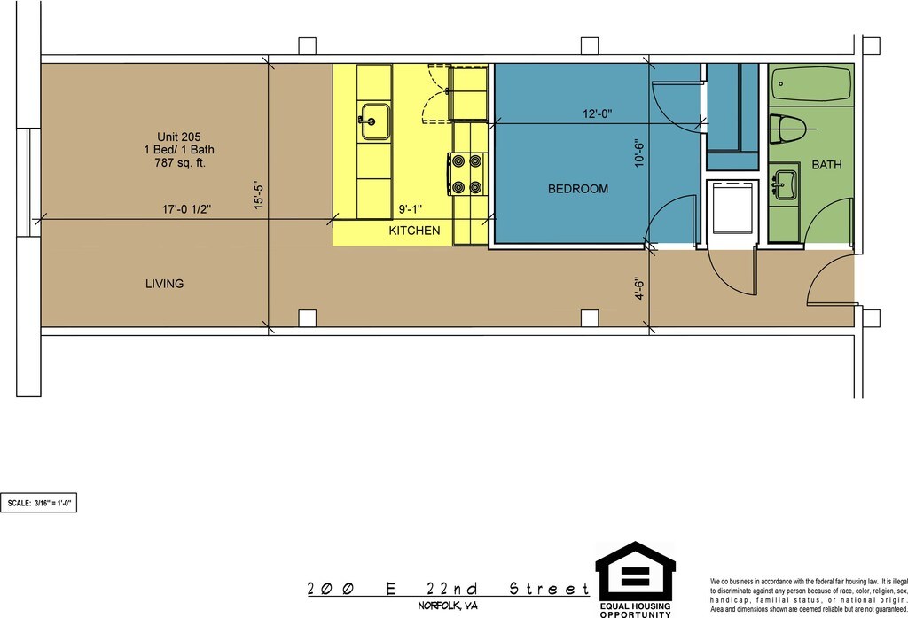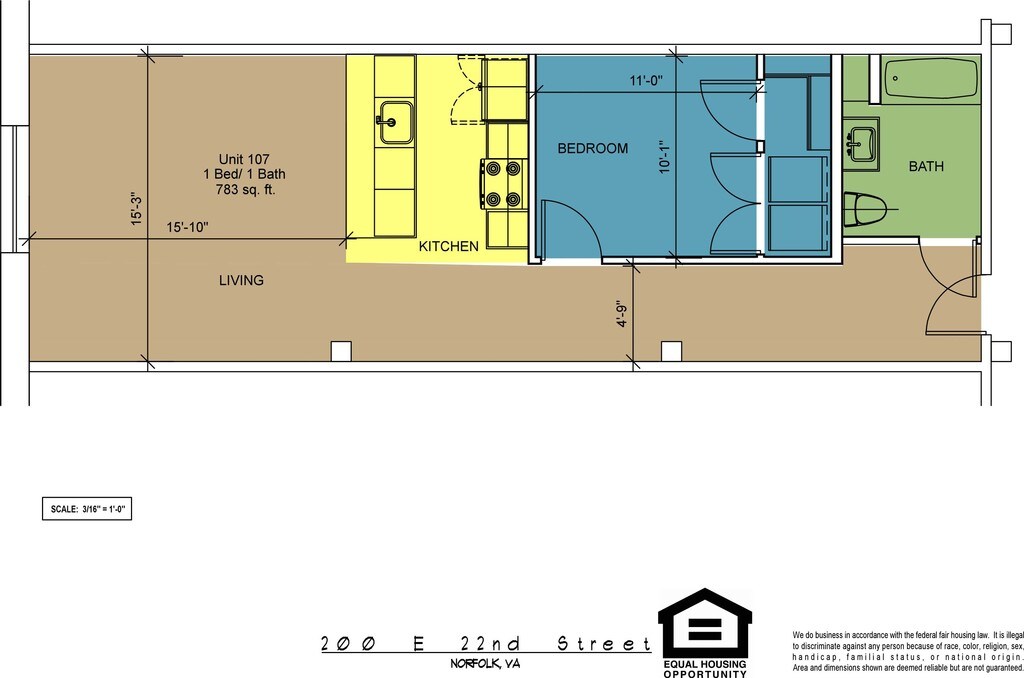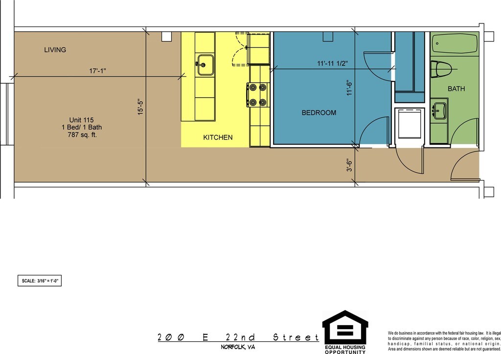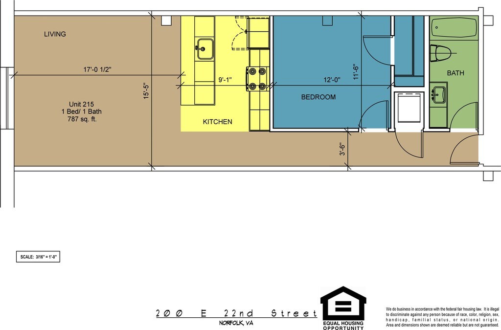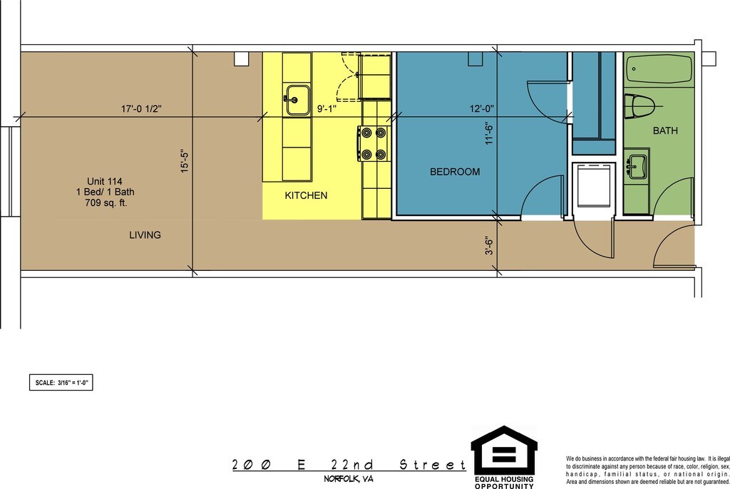 The Brightleaf Building 115 - Plano 1 Unidad de apartamento: 115Modelo de apartamento: The Brightleaf Building 1151 Dormitorio, 1 Baño, 787 sq ftDisponible AhoraThe Brightleaf Building 127