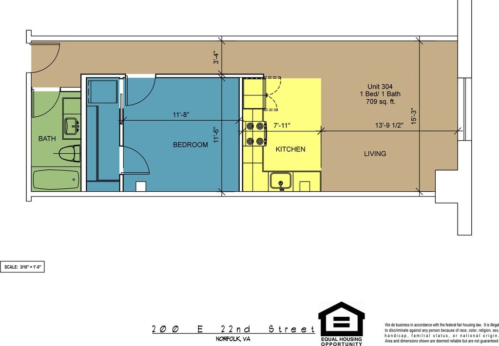 Modelo de apartamento: The Brightleaf Building 3241 Dormitorio, 1 Baño, 636 sq ftNo Disponible![]()
