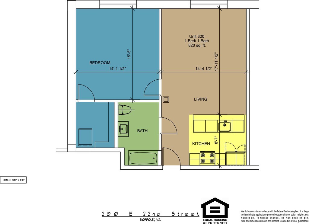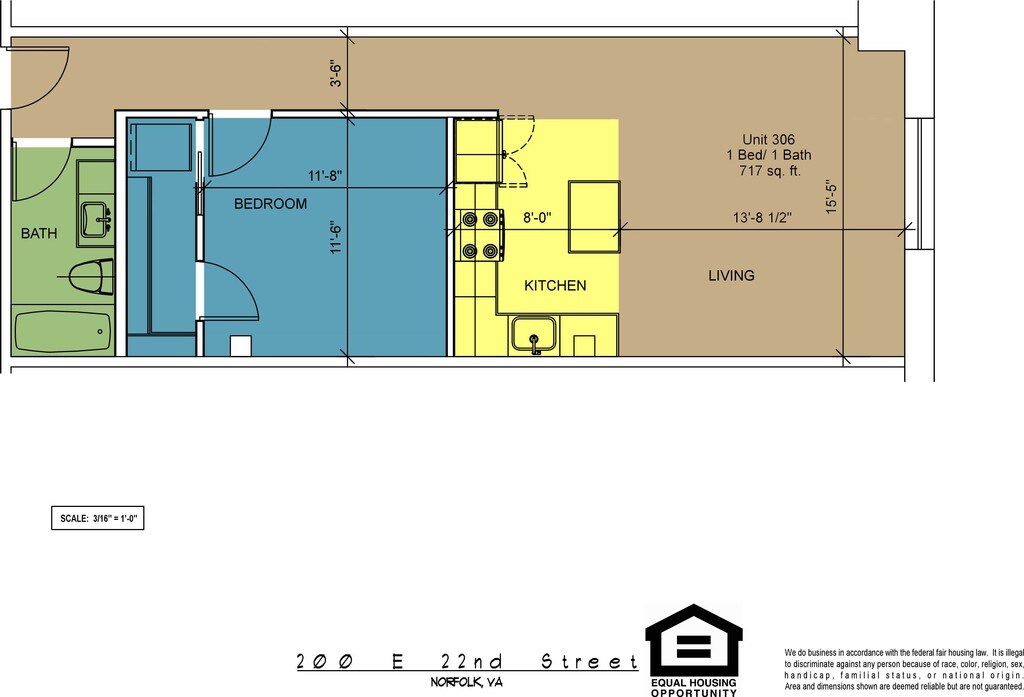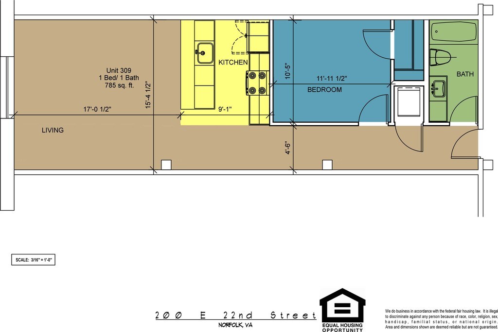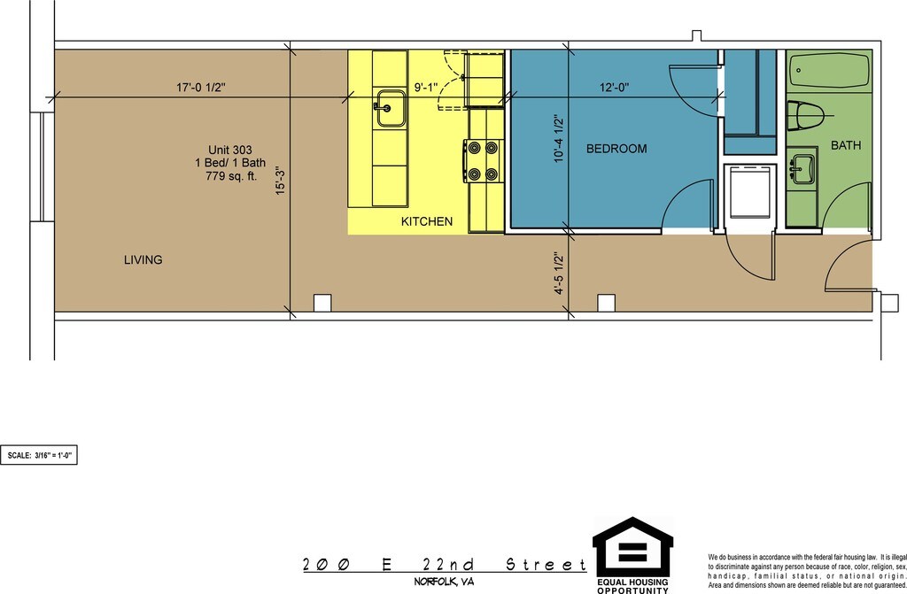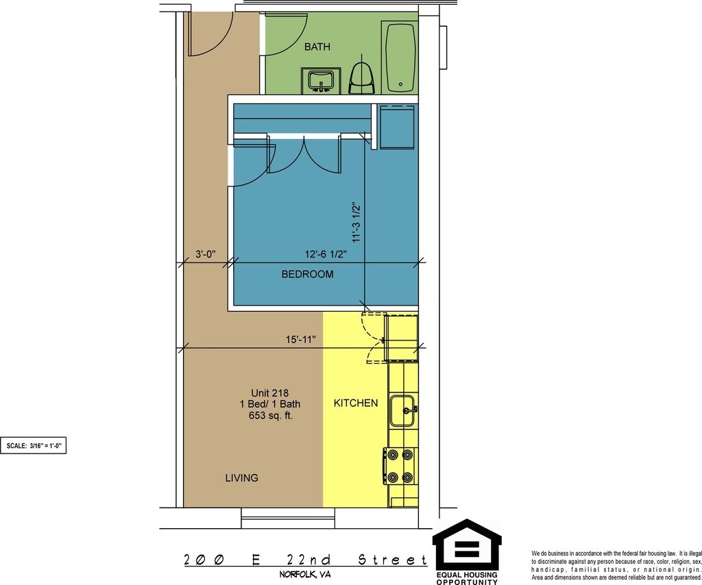 Modelo de apartamento: The Brightleaf Building 3271 Dormitorio, 1 Baño, 575 sq ftNo Disponible![]()