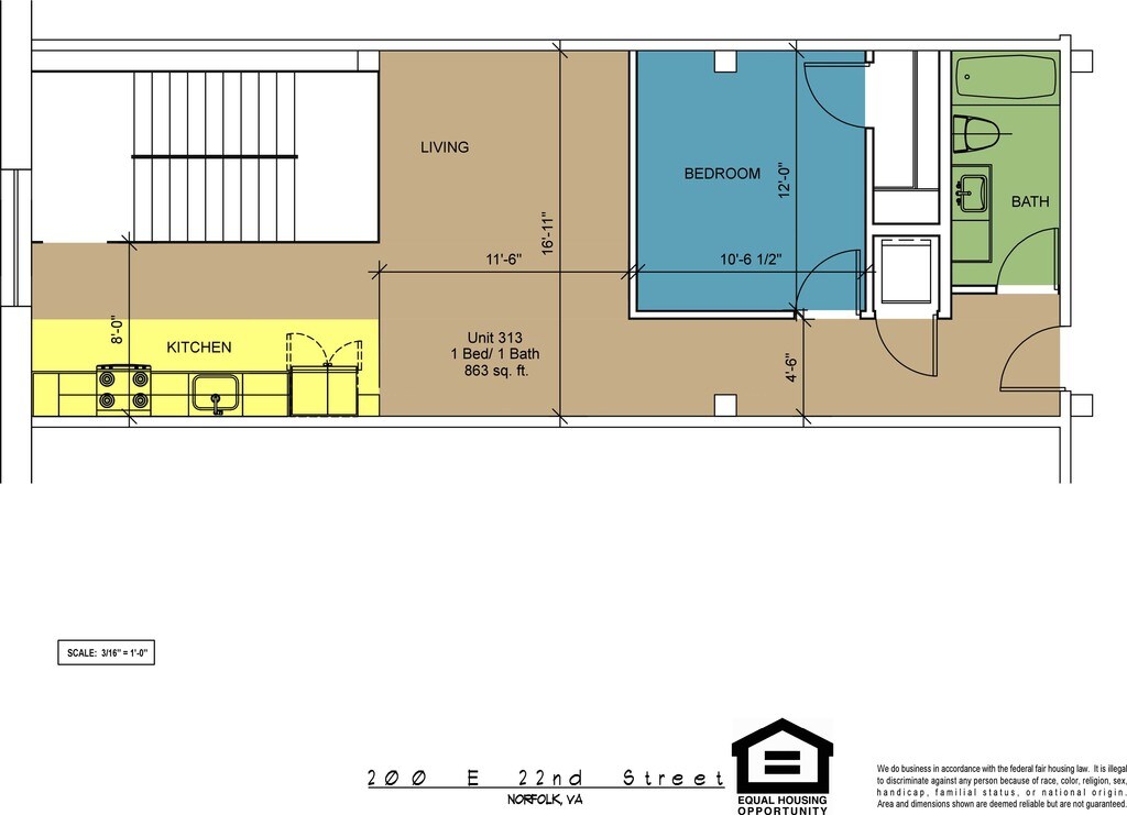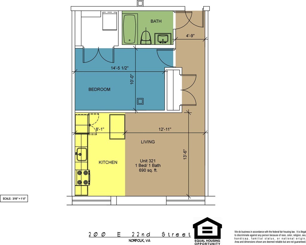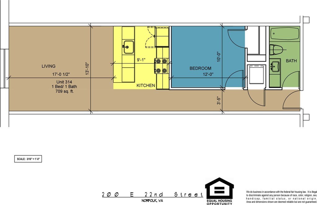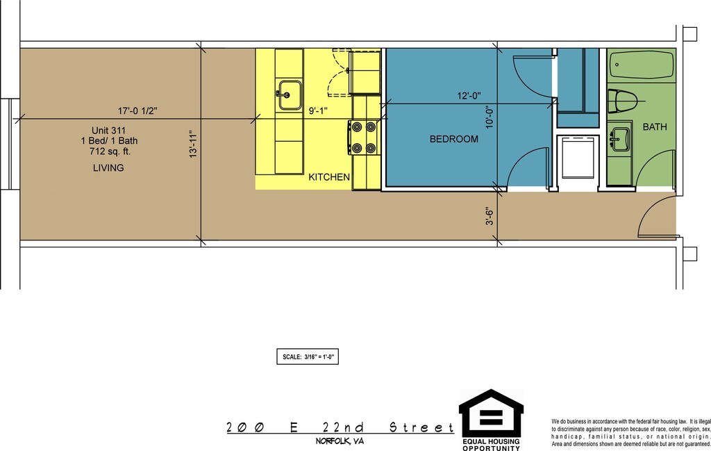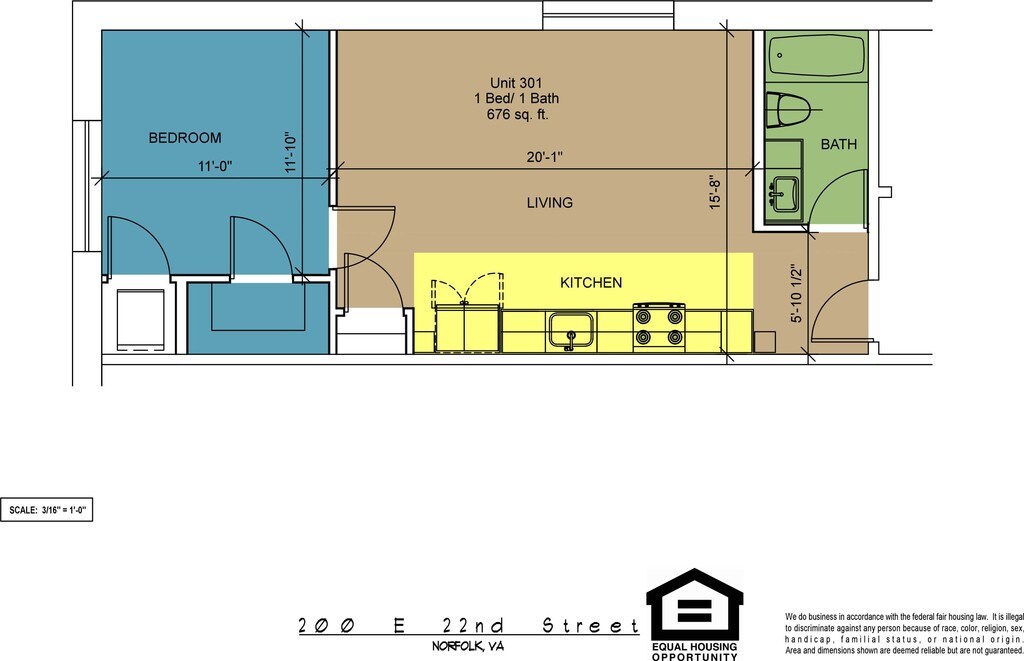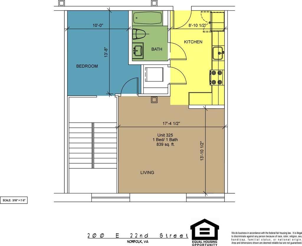 Modelo de apartamento: The Brightleaf Building 3271 Dormitorio, 1 Baño, 575 sq ftNo Disponible![]()