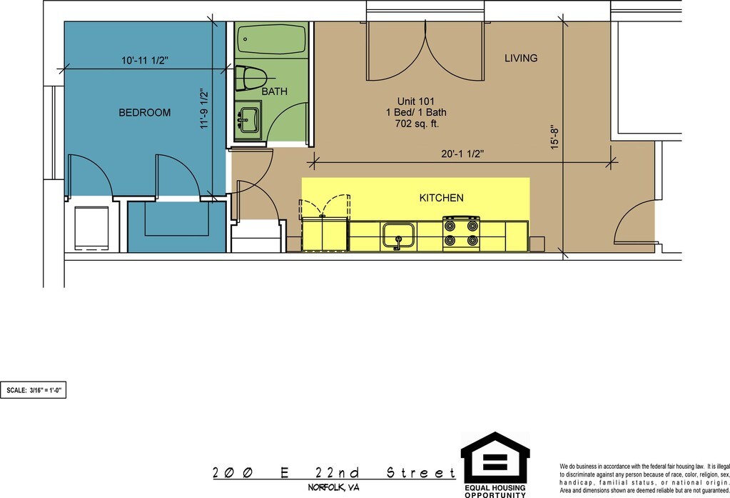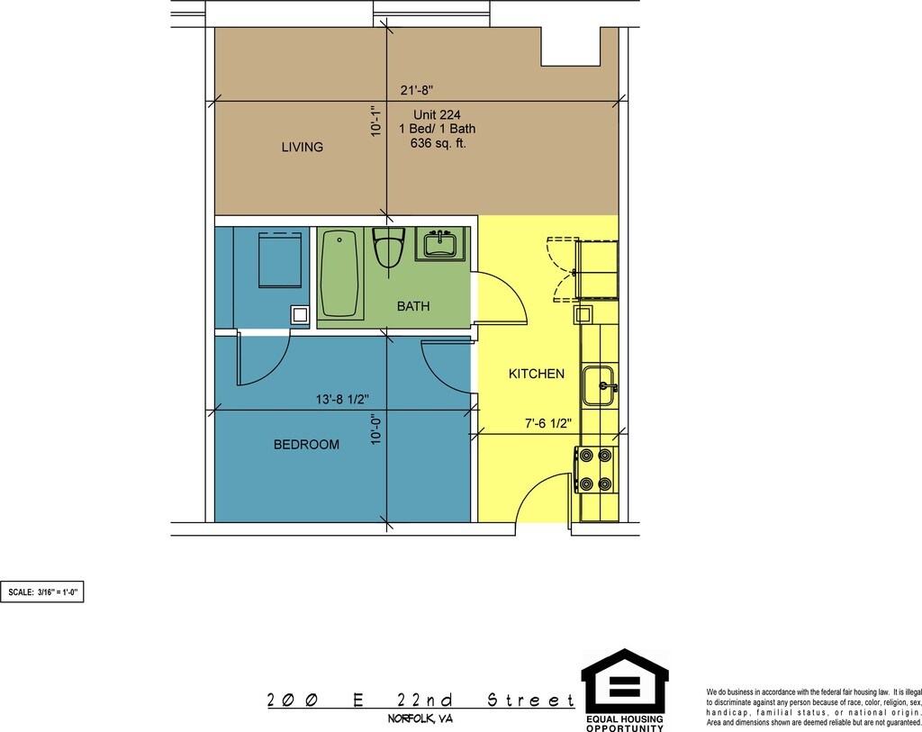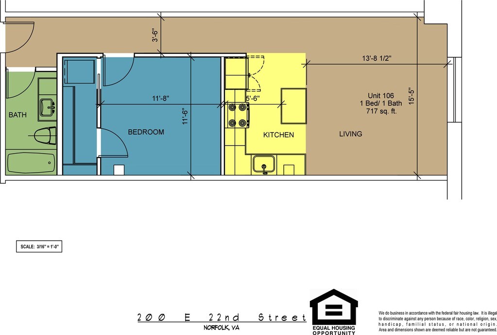 Modelo de apartamento: The Brightleaf Building 2241 Dormitorio, 1 Baño, 636 sq ftNo Disponible![]()