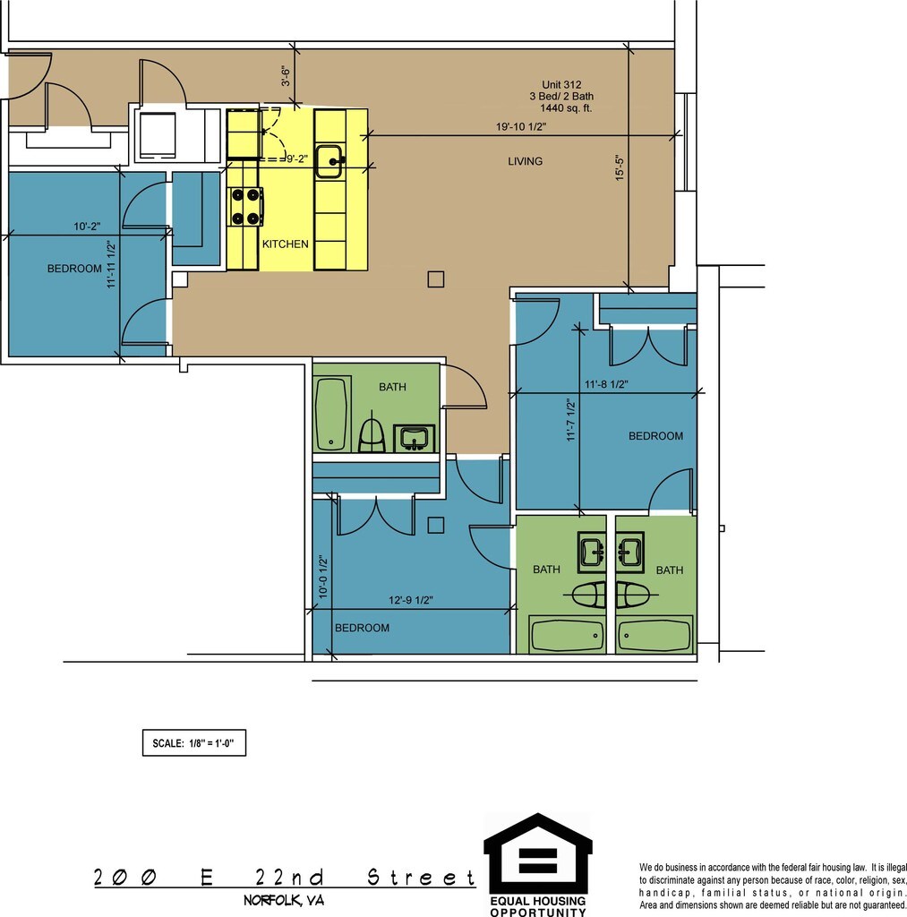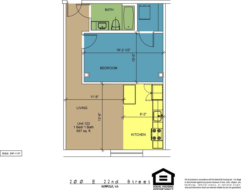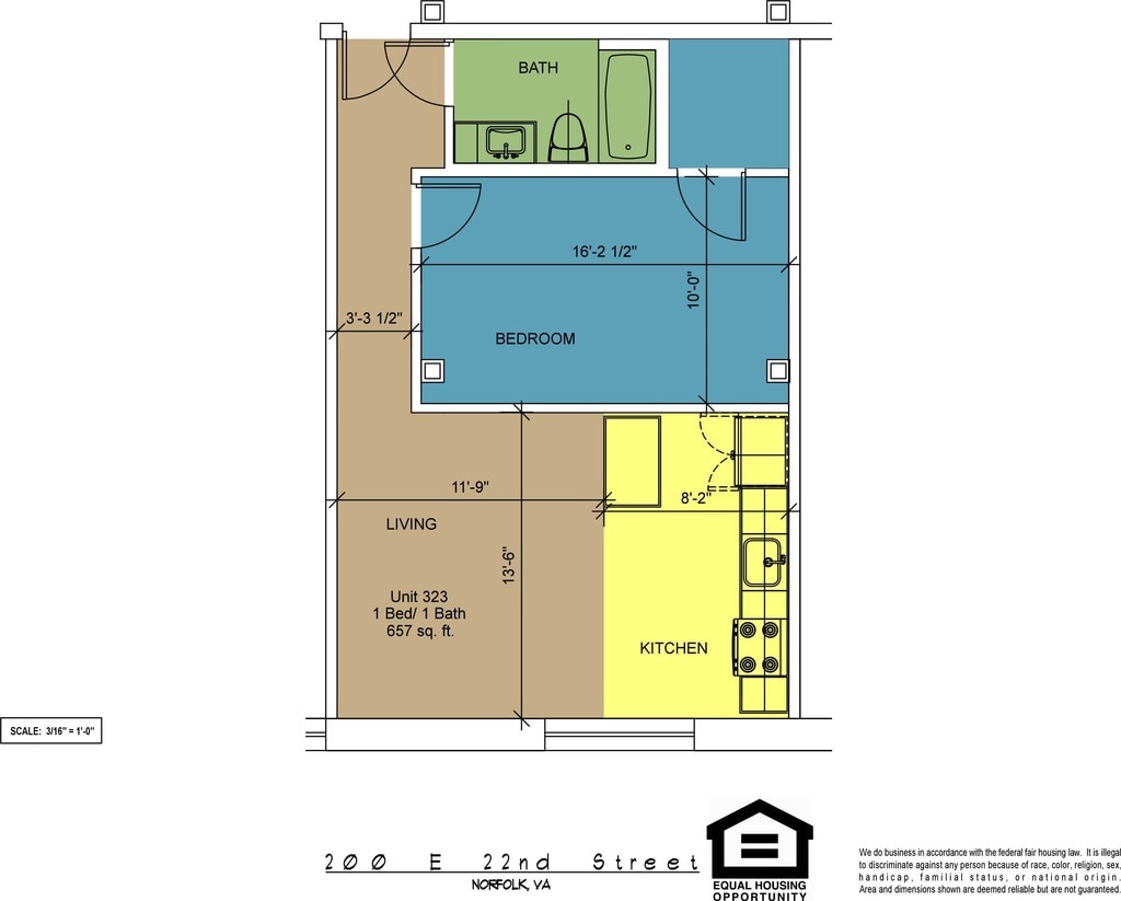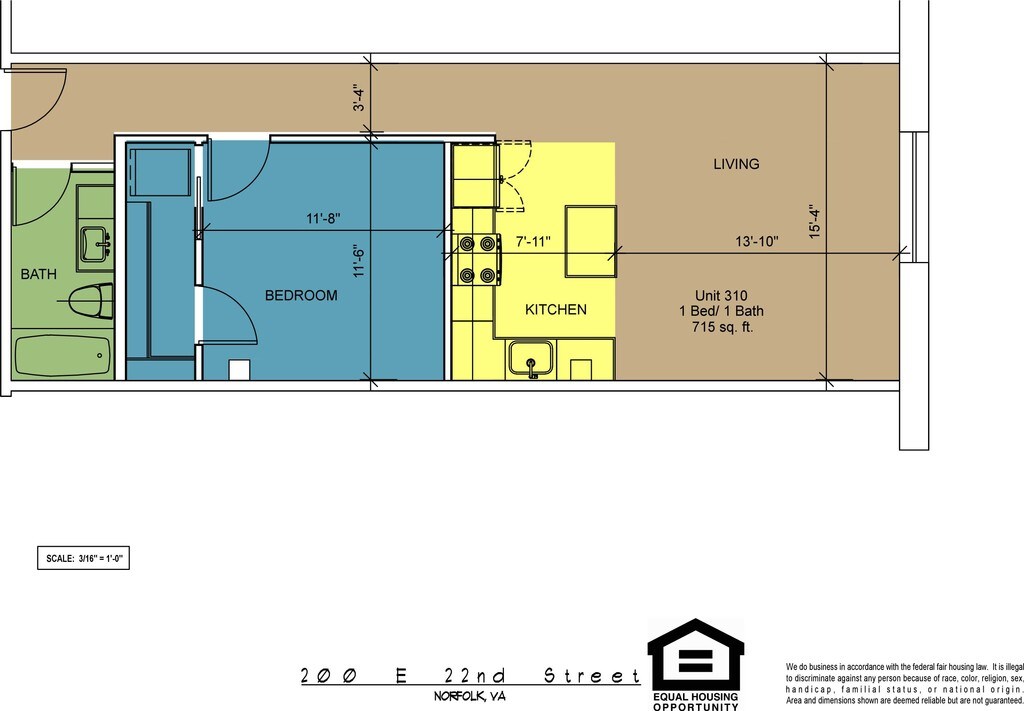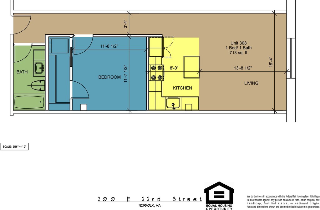 The Brightleaf Building 323 - Plano 1 Unidad de apartamento: 323Modelo de apartamento: The Brightleaf Building 3231 Dormitorio, 1 Baño, 657 sq ftDisponible AhoraThe Brightleaf Building 203