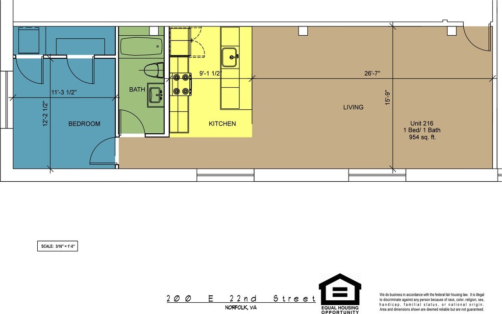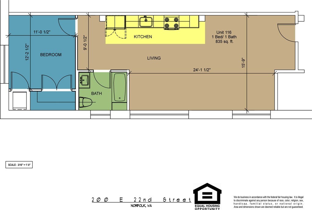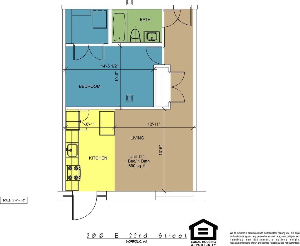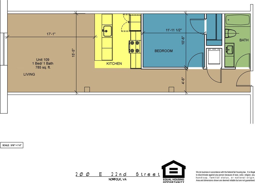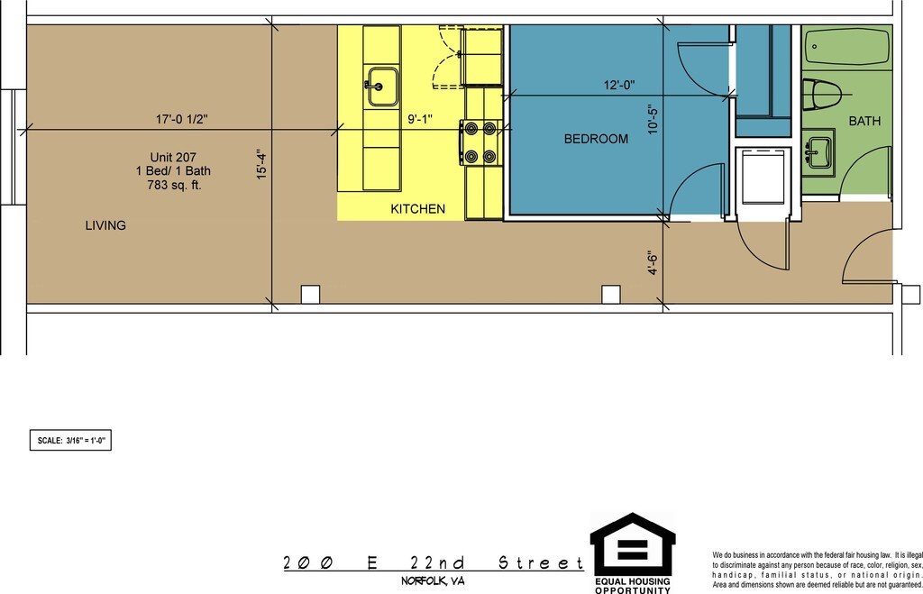 Modelo de apartamento: The Brightleaf Building 1271 Dormitorio, 1 Baño, 575 sq ftNo Disponible![]()