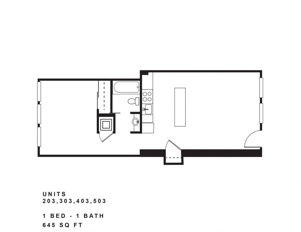 1 Bedroom, 1 Bath B - Plano 1 Unidad de apartamento: 303Modelo de apartamento: 1 Bedroom, 1 Bath B$1,9951 Dormitorio, 1 Baño, 645 sq ftDisponible Pronto![]()