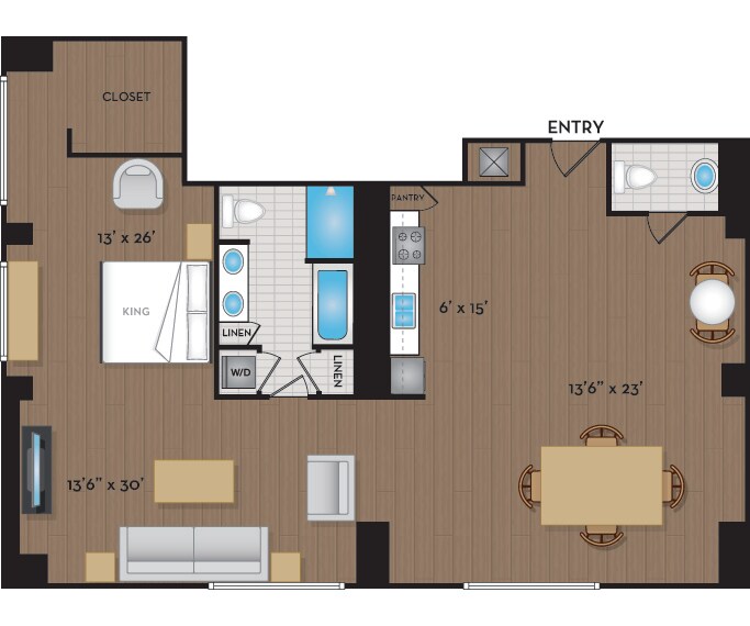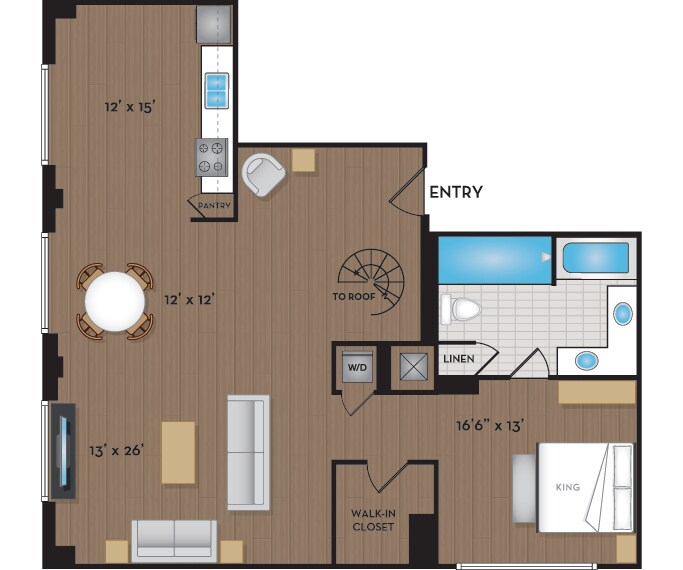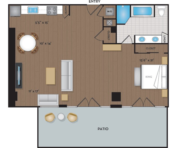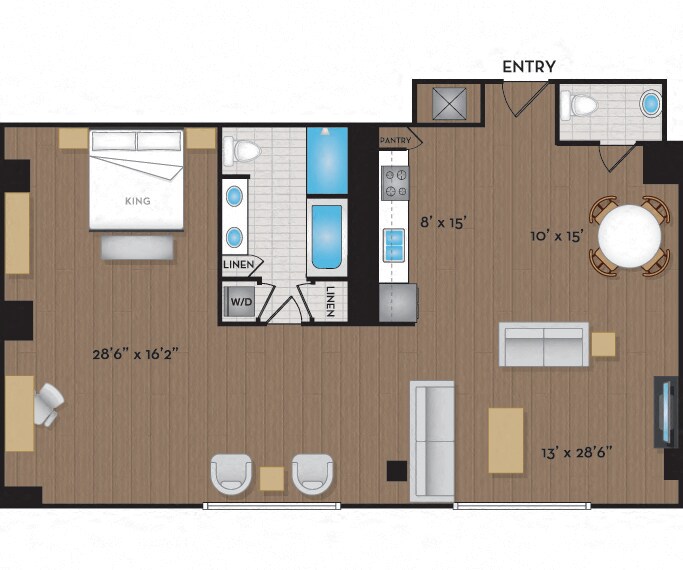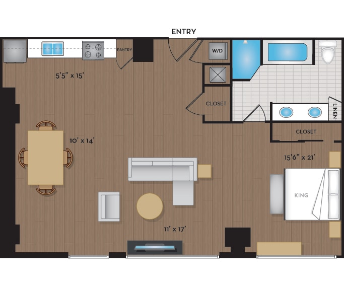 June 15, 2022Its a beautiful apartment, we love lofts. Mine has light wood floors which is great!Reseña de Apartments.com