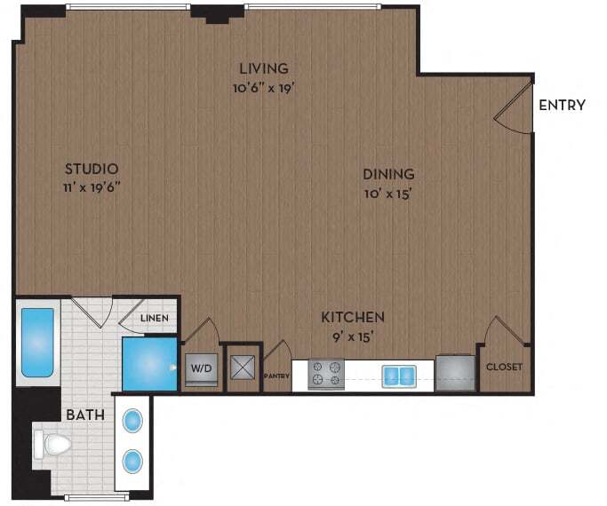 Estudio, 1 Baño, 904-972 pies²Precio Mensual TotalDisponible AhoraPrecio Mensual Total