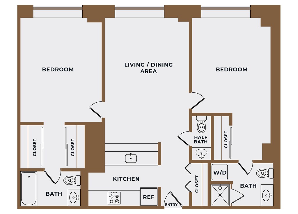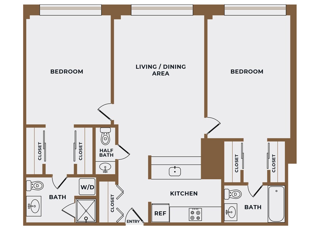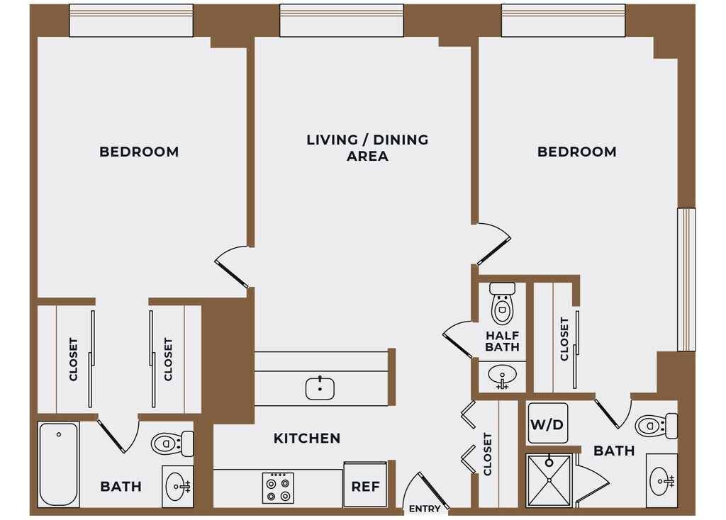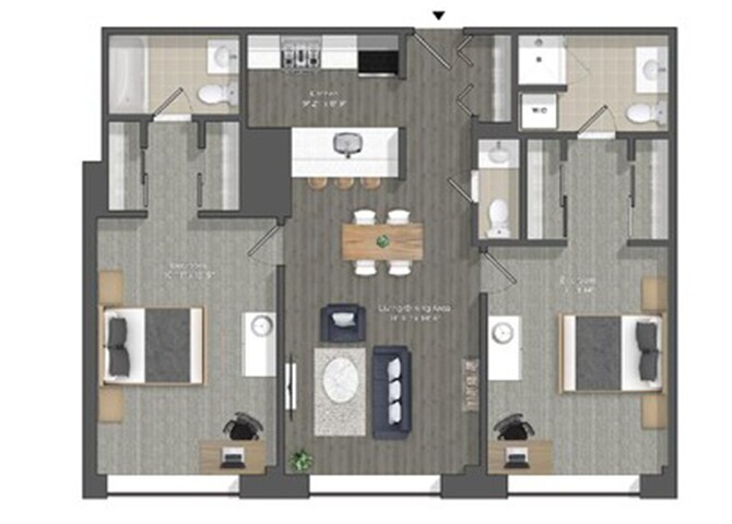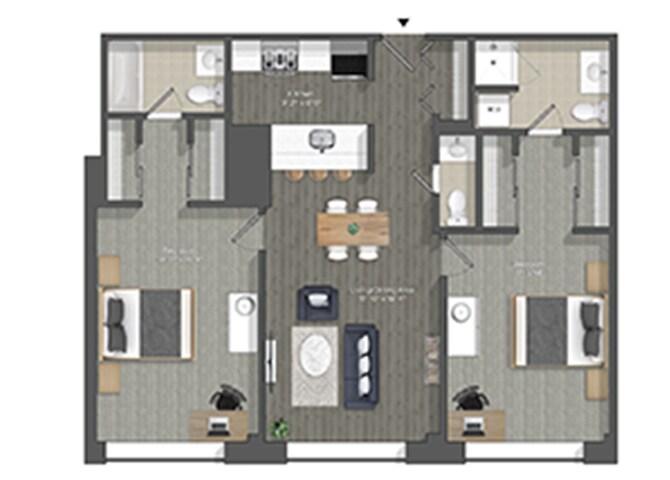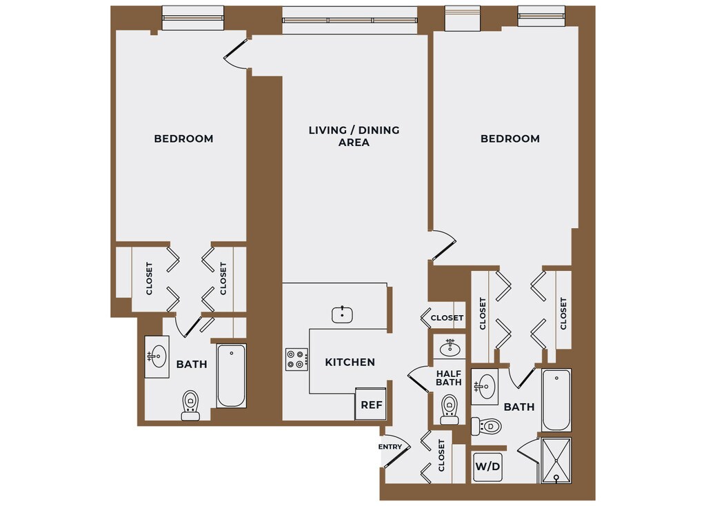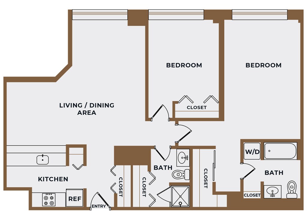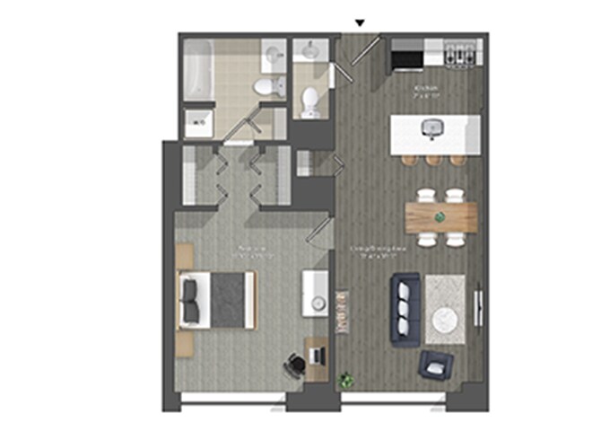 Modelo de apartamento: A2Llame para Precios1 Dormitorio, 1 Baño, 575 sq ftNo Disponible![]()