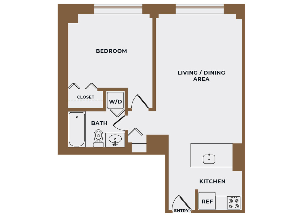 1 Dormitorio, 1 Baño, 575 pies²Galería del Modelo