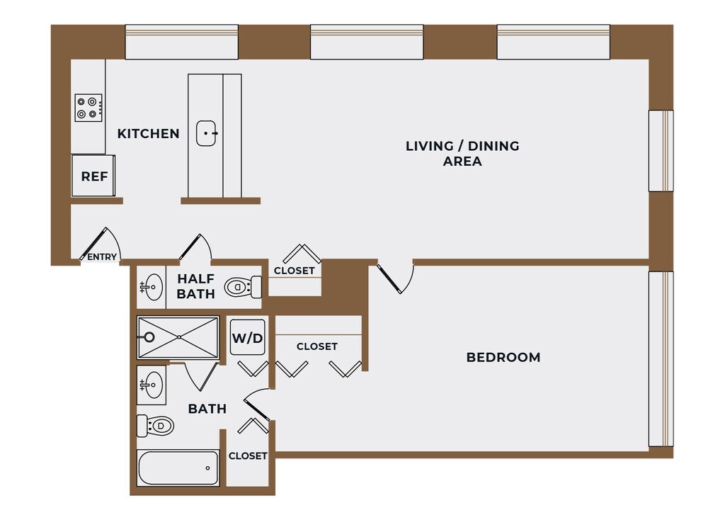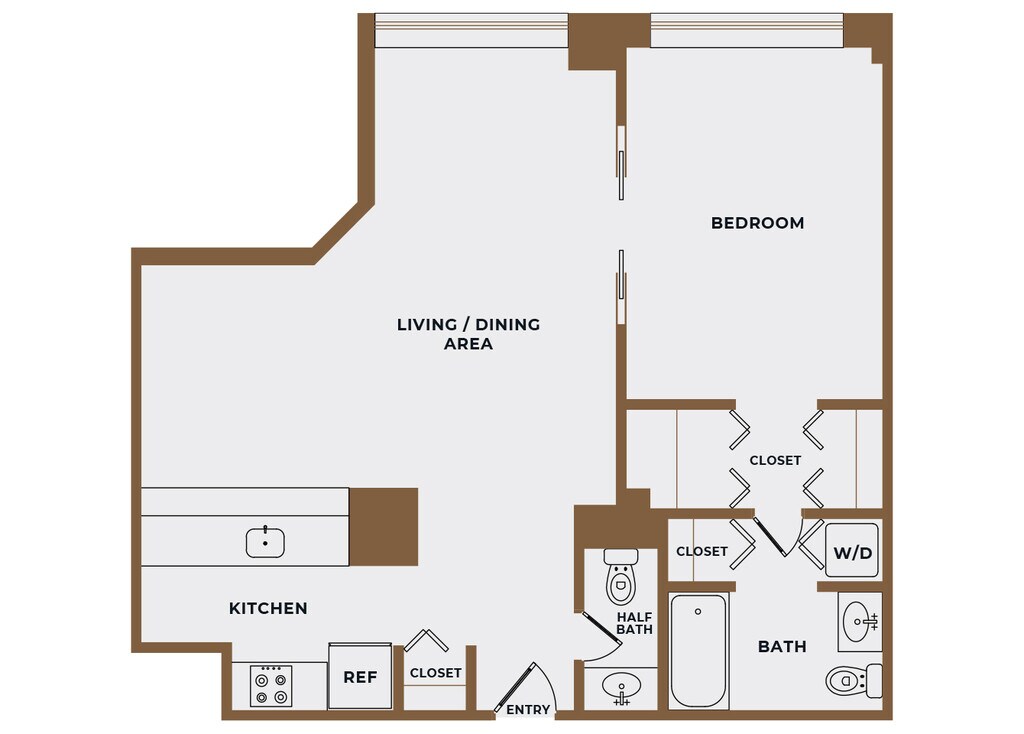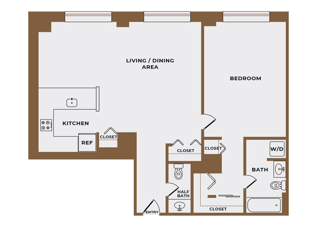 1 Dormitorio, 1.5 Baños, 790 pies²Disponible Nov 24Galería del Modelo
