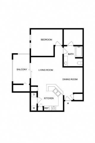 Modelo de apartamento: A1ADesde $9591 Dormitorio, 1 Baño, 657 sq ftDisponible Ahora![]()