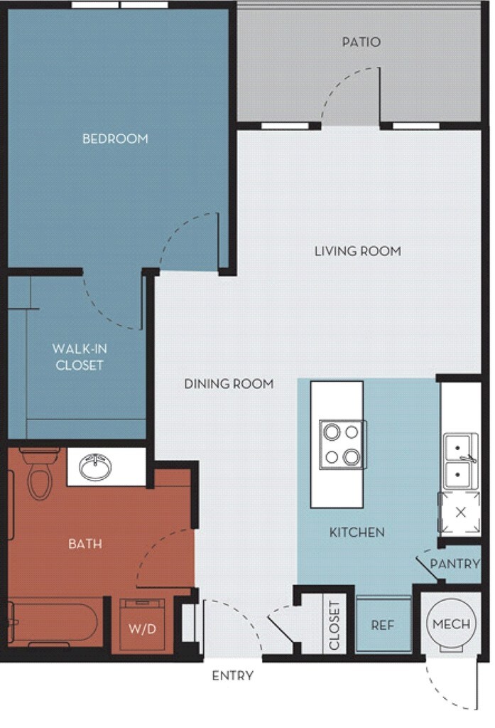 Vail - Plano 1 Unidad de apartamento: 7-7-105Modelo de apartamento: Vail$1,6451 Dormitorio, 1 Baño, 752 sq ftDisponible Ahora2 Dormitorios