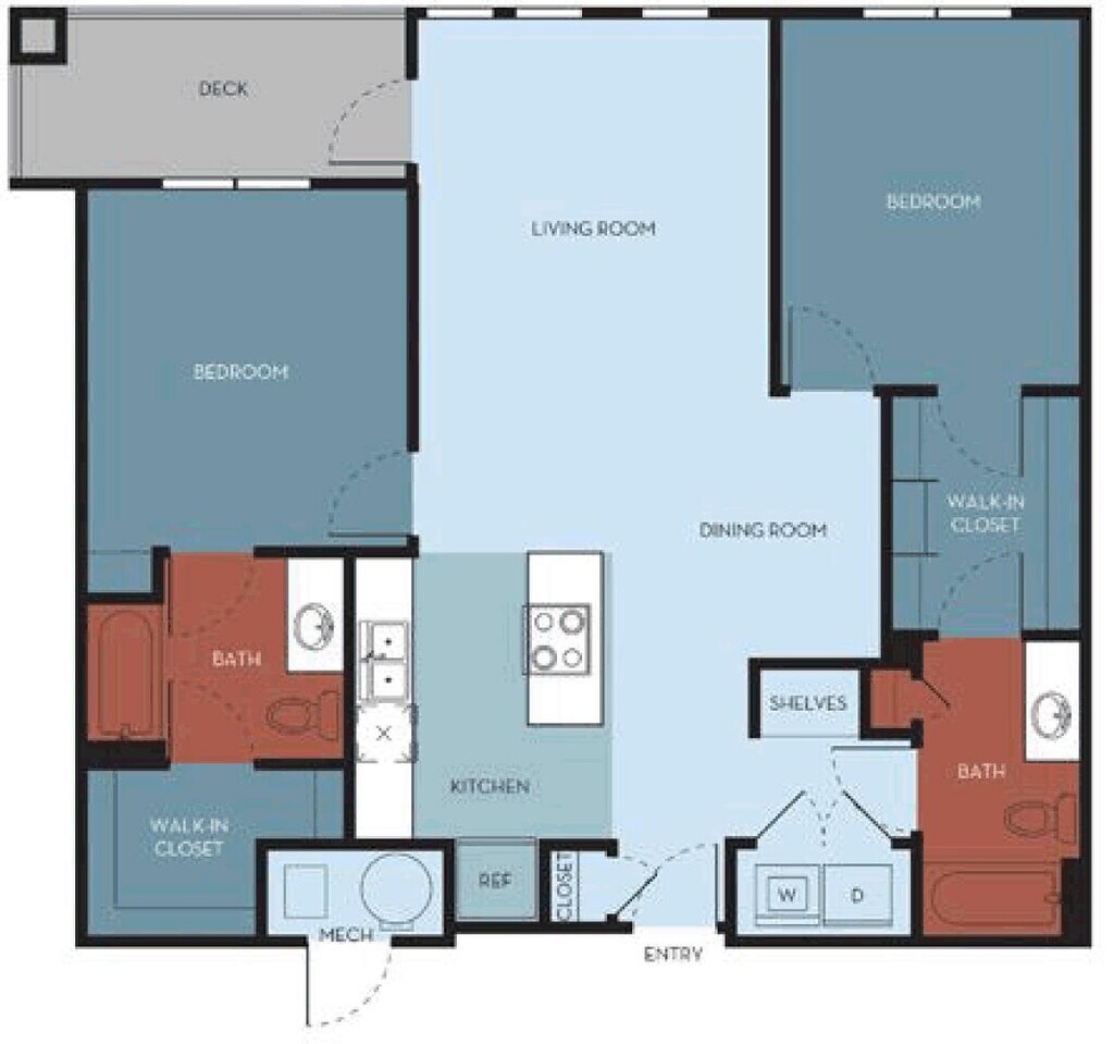 1 Dormitorio, 1 Baño, 744-778 pies²Disponible AhoraEl más grandeEsta opción tiene las unidades más grandes para este modeloGalería del Modelo
