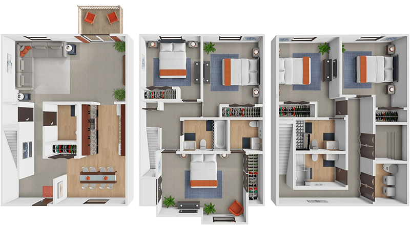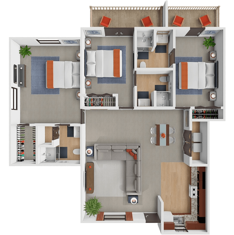 Modelo de apartamento: 3 Bedroom 2.5 BathDesde $1,3993 Dormitorios, 2.5 Baños, 558 sq ftDisponible Ahora![]()