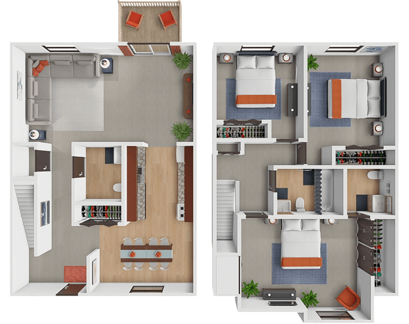 Modelo de apartamento: 3 Bedroom 3 Bath$1,5993 Dormitorios, 3 Baños, 498 sq ftDisponible Ahora3 Bedroom 3 Bath - Plano 1 3 Bedroom 3 Bath - Plano 2 3 Bedroom 3.5 Bathroom with a Basement