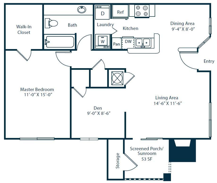 1 Dormitorio, 1 Baño, 870 pies²Disponible AhoraGalería del Modelo