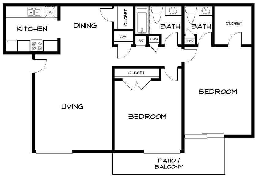 Modelo de apartamento: B1Desde $1,2002 Dormitorios, 1.5 Baños, 875 sq ftDisponible Ahora![]()