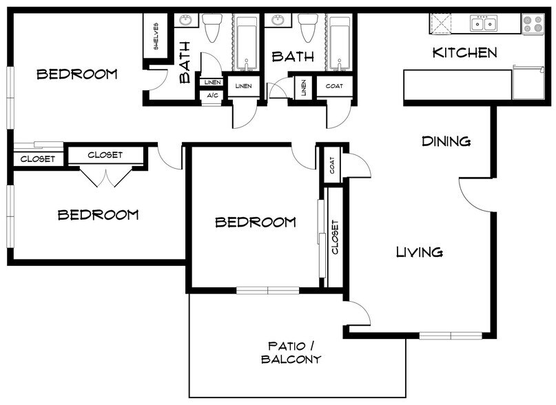 Modelo de apartamento: C1Desde $1,4253 Dormitorios, 2 Baños, 1185 sq ftDisponible Ahora![]()