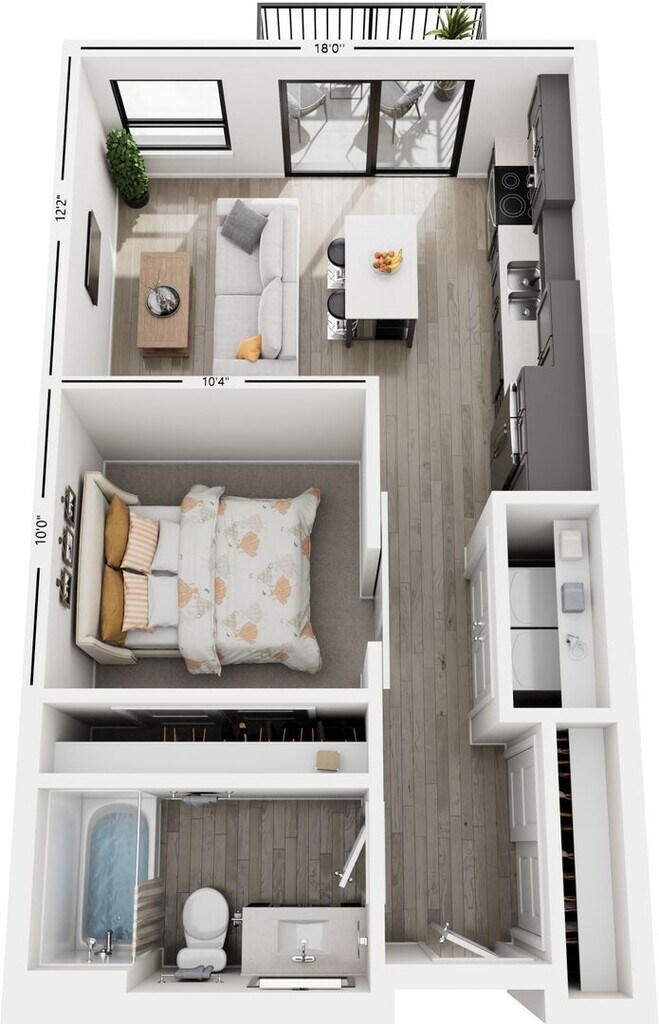 Nile (0-2) - Imagen 10 Unidad de apartamento: 443Modelo de apartamento: Nile (0-2)$1,570Estudio, 1 Baño, 570 sq ftDisponible AhoraMilo (0-1)